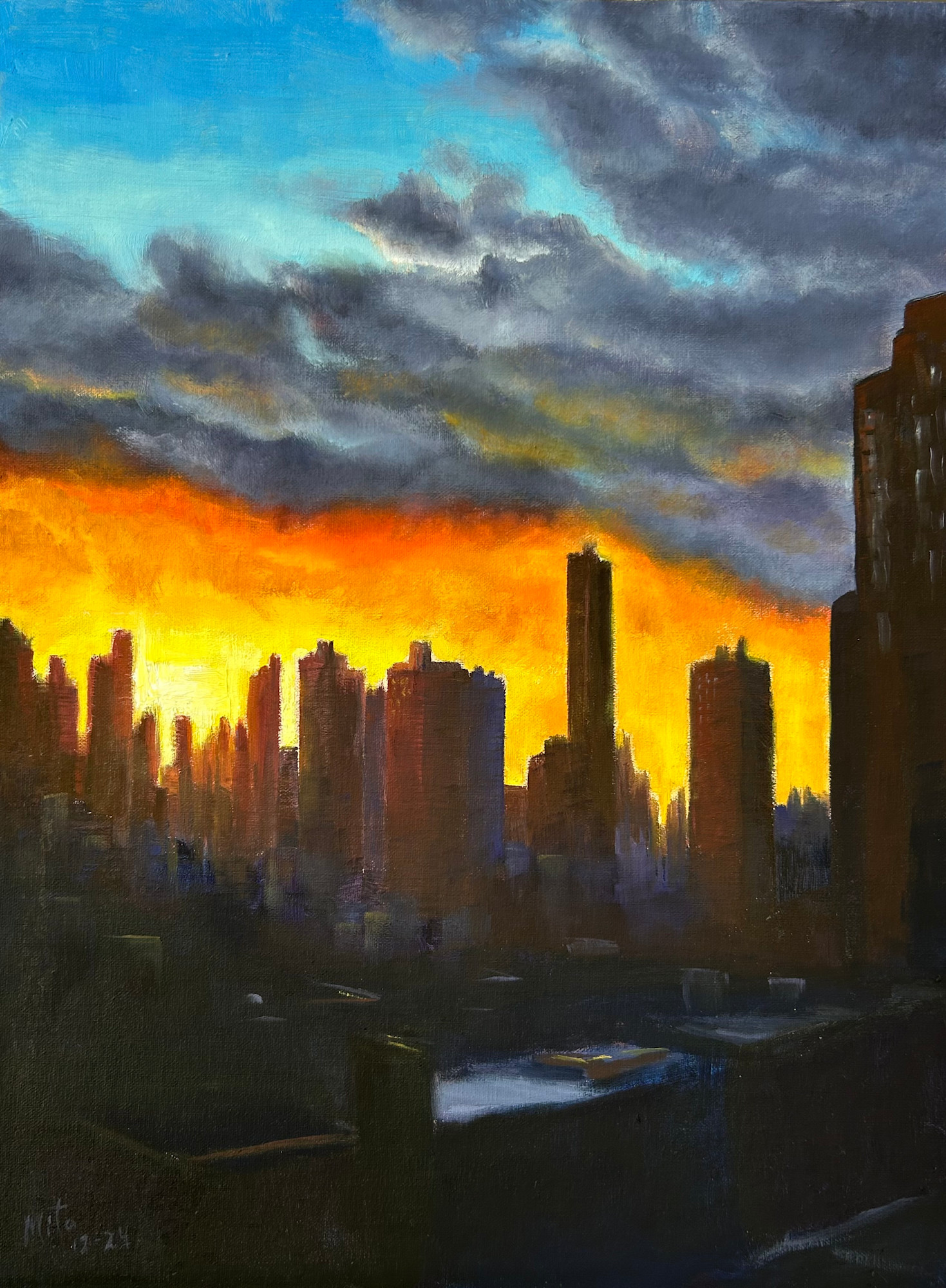 The inspiration for this painting was a photography I took from the top roof of the building. Where my daughter used to live in New York.