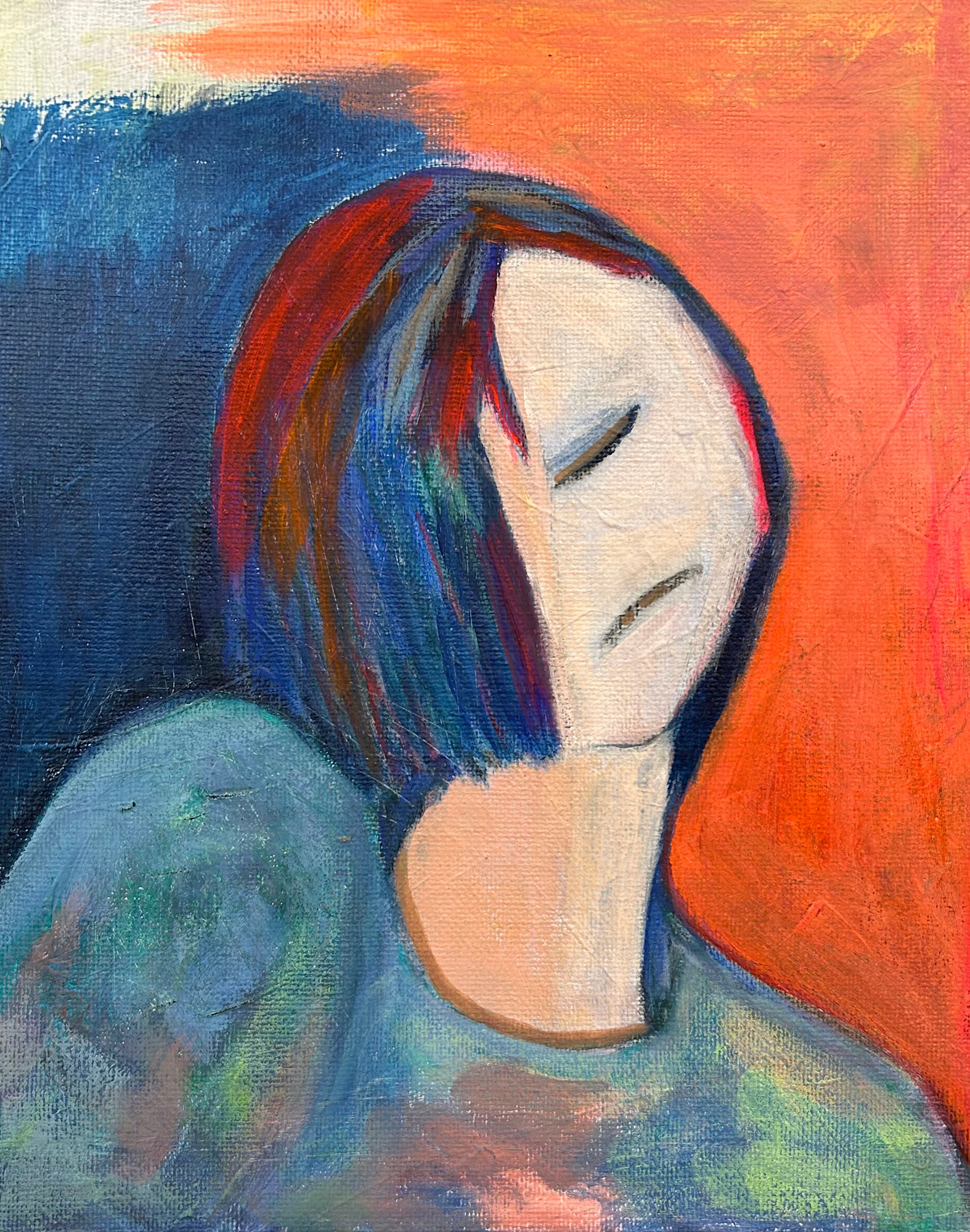 This piece was inspired by a pencil drawing from an elementary school girl. The class was assigned to depict sadness.