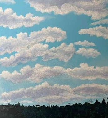 This piece was created to be installed behind a real window. In my view, the window is not meant to be a "frame" per se, but an integral part of the piece. Attached are both a jpg of the painting and a jpg including the window.
