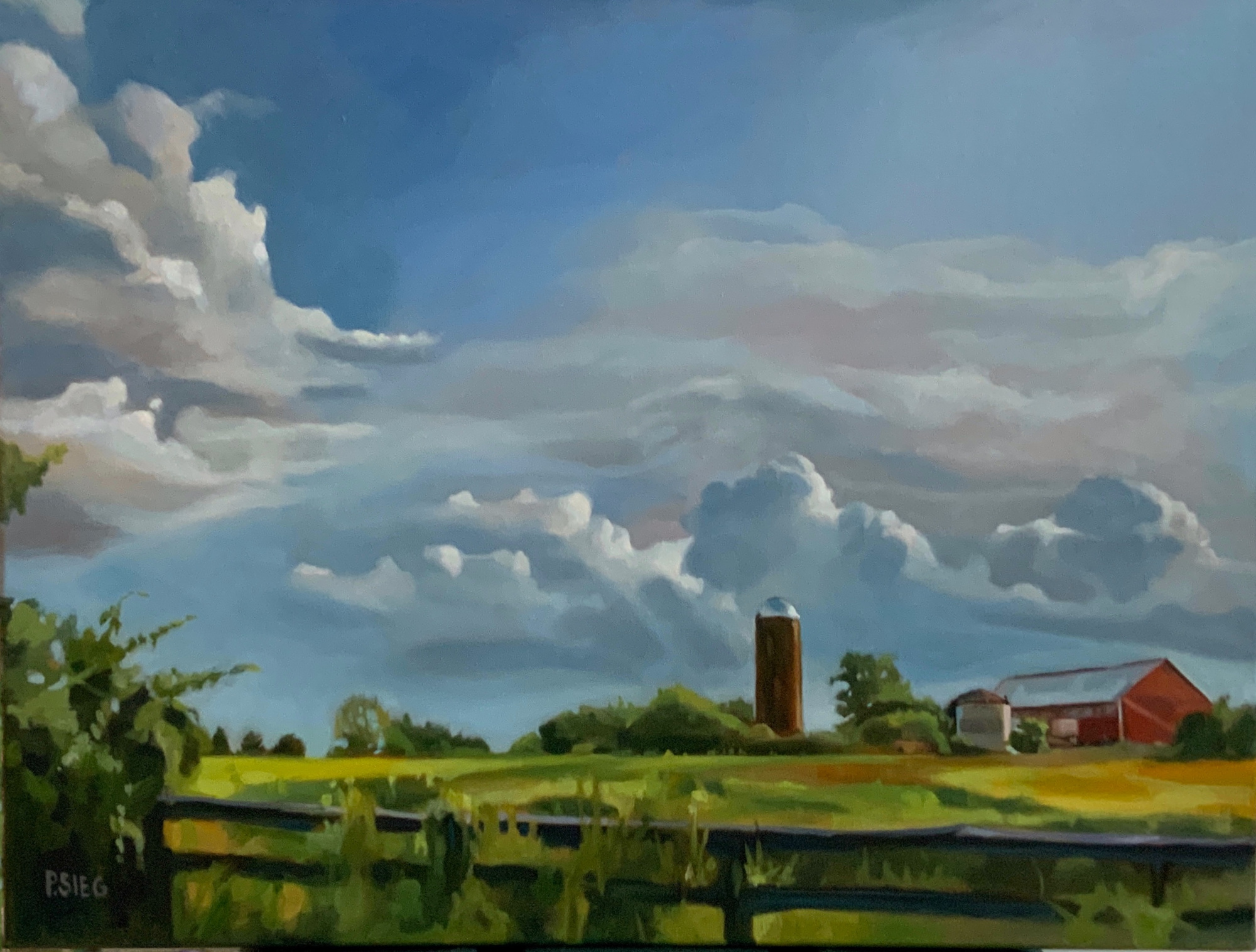 View of Fraley Farm as a storm builds. Based on a photo by Lisa Sieg. August.