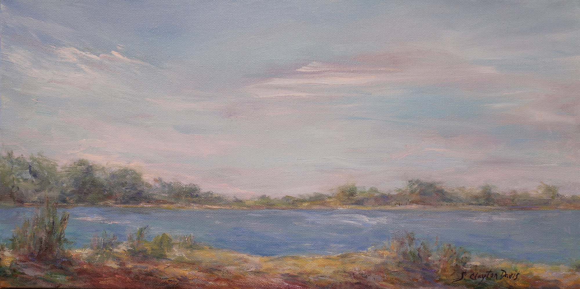 The York River area near Yorktown has many golden toned marshes in the early fall. The river can look a striking blue on sunny days. I have painted on location there several times.