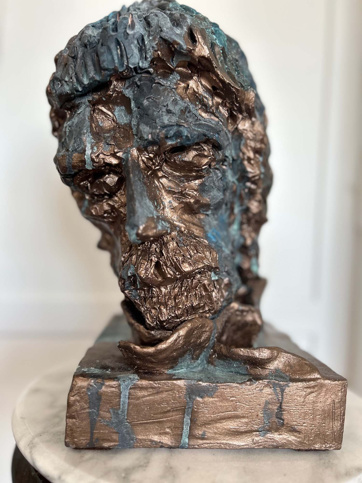 - Terra Cotta with aged bronze patina