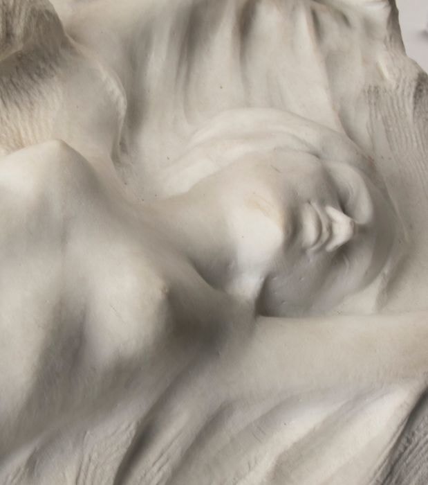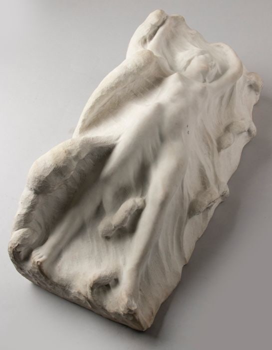 Large carved marble sculpture of a naked woman in the foam of the waves. Supposedly inspired by the famous painting 'Birth of Venus' by Alexandre Cabanel (Museum D'Orsay).