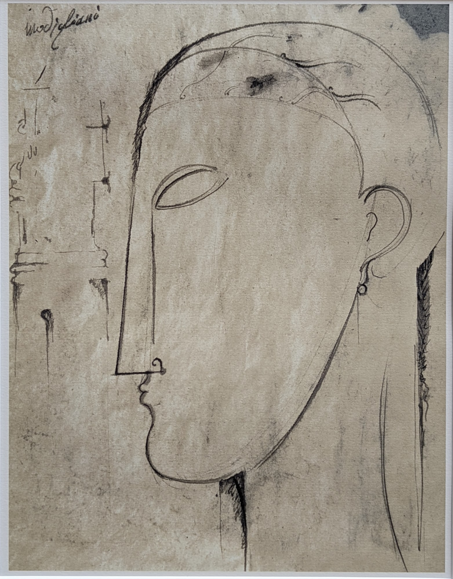 Head of caryatid, after Modigliani 1911. Ink on paper, 36 x 26.5 cm