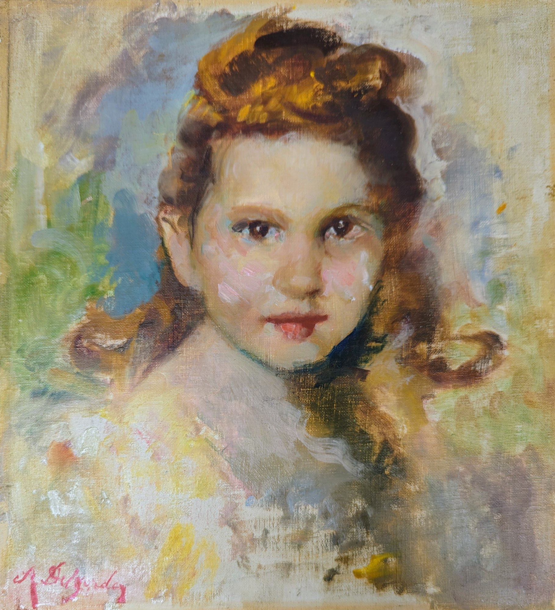 Portrait of a girl by an Italian artist, signed, but not recognised. Oil ion canvas, laid on board.