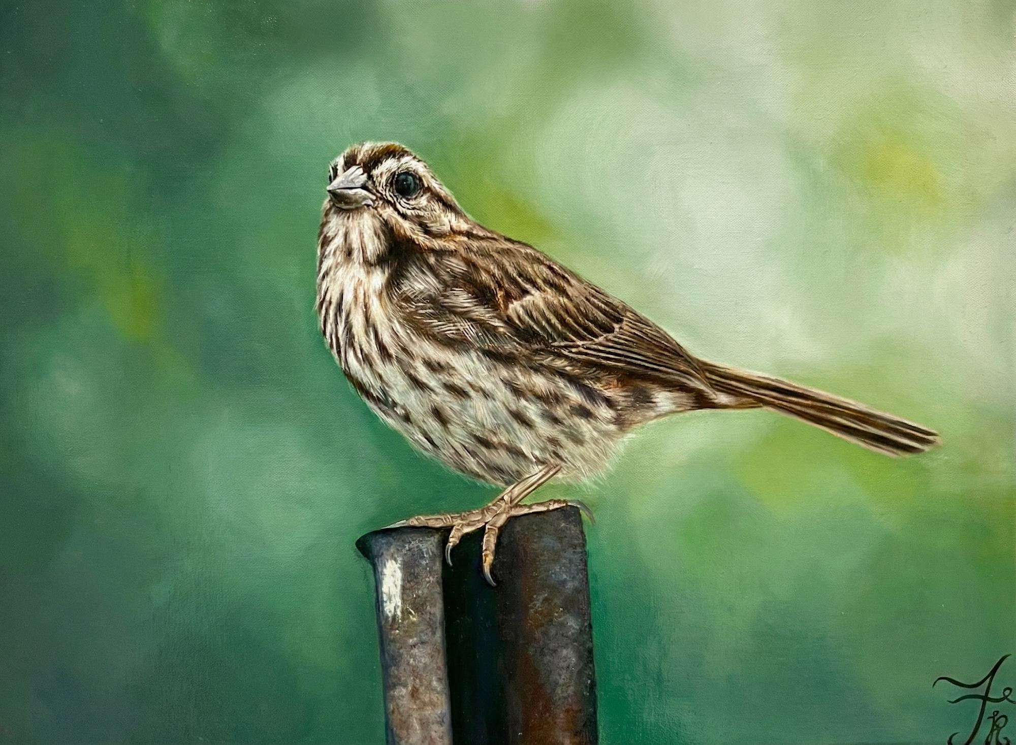- Subject Matter: Sparrow, Birds, Nature, Spring, Beauty, Freedom, Peace, Hyperrealism, Realistic bird painting, Nature art, Fine art painting