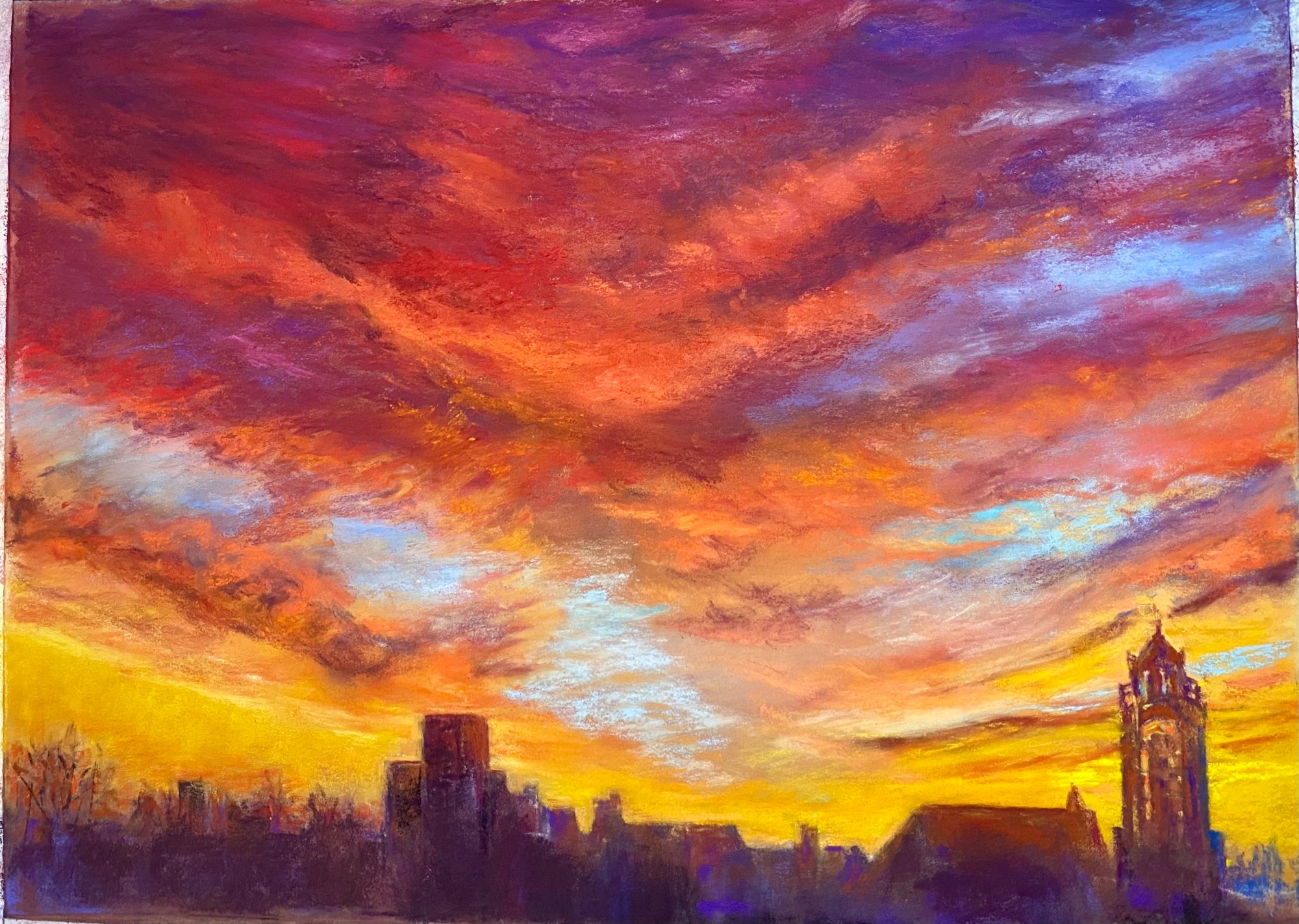 Intense colors are reflected the clouds during a winter sunrise above Rochester, NY