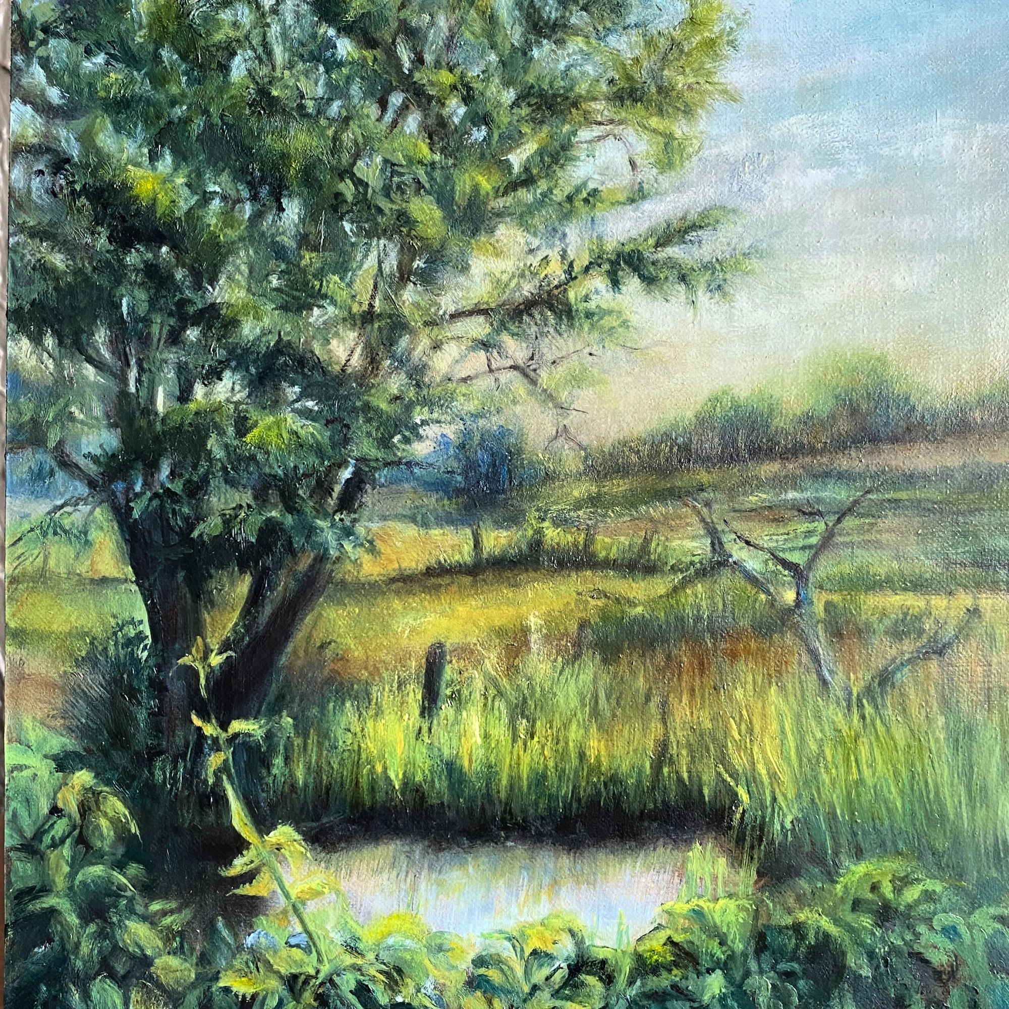 A quick view over a fence and a weedy hedge revealed such a quiet summer field. I couldn’t resist capturing the contrast of hot and cool colors from sun to shaded areas.