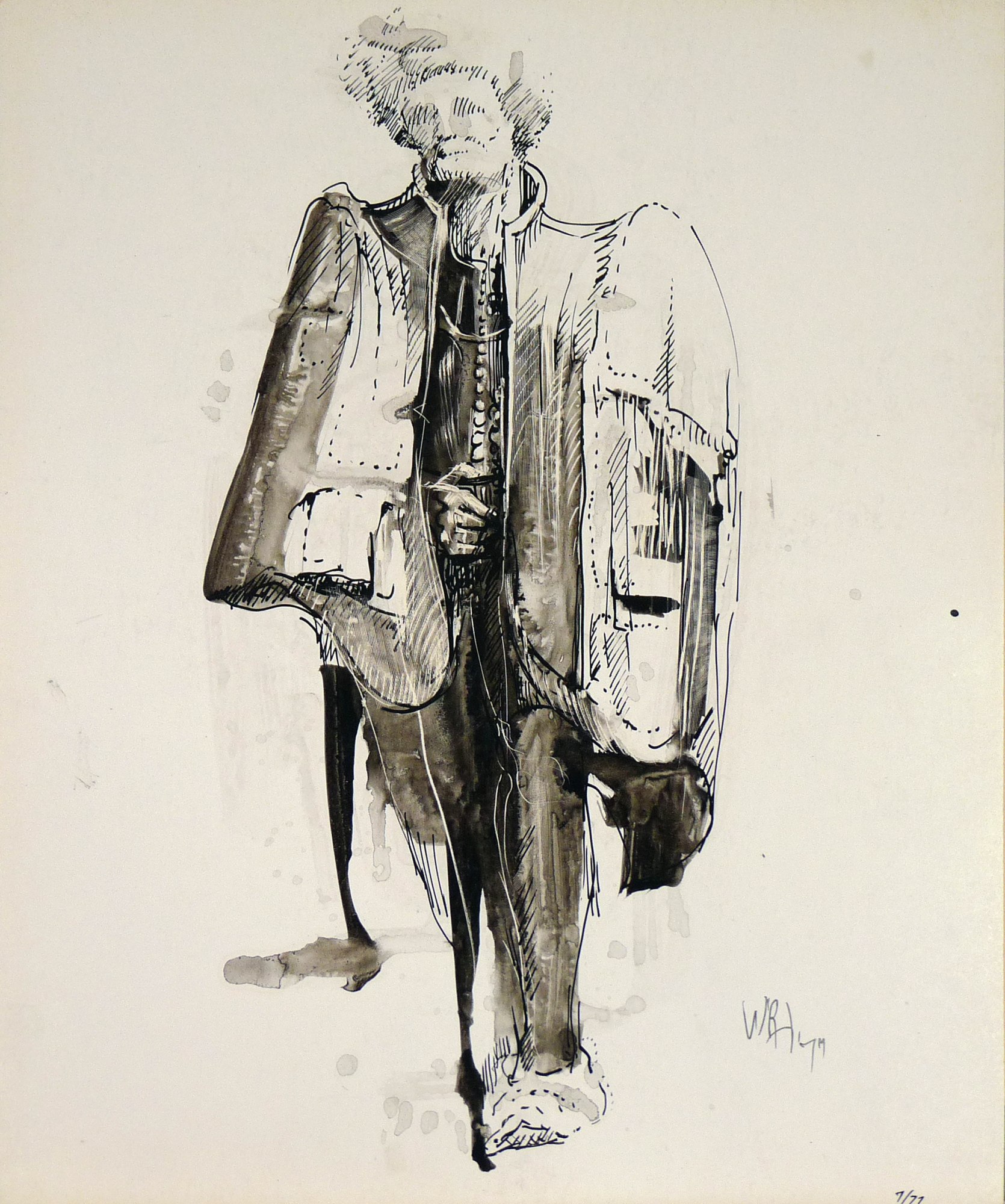 Ink, ink wash, pencil, watercolor on Bristol