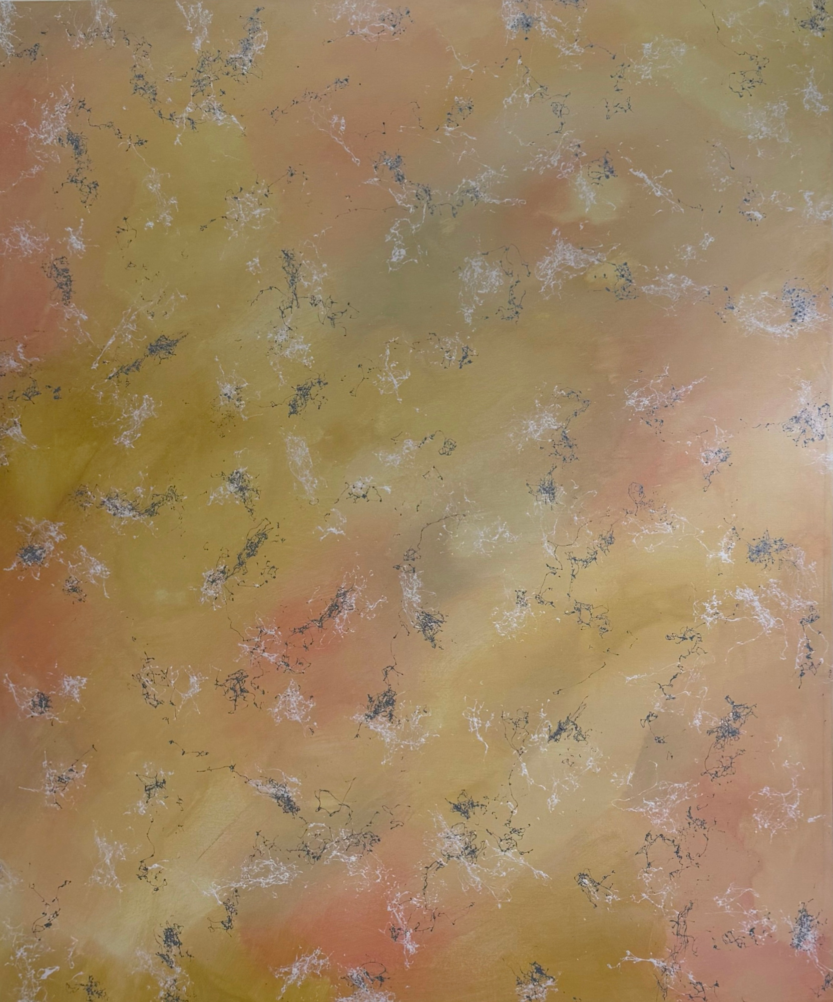 Delicate marks ripple across the surface like soul-maps—fluid, luminous, and fragmentary—hinting at inner states too complex for language. The layering of materials reflects the many textures of being: vulnerability, memory, intuition, and the quiet resilience of spirit.