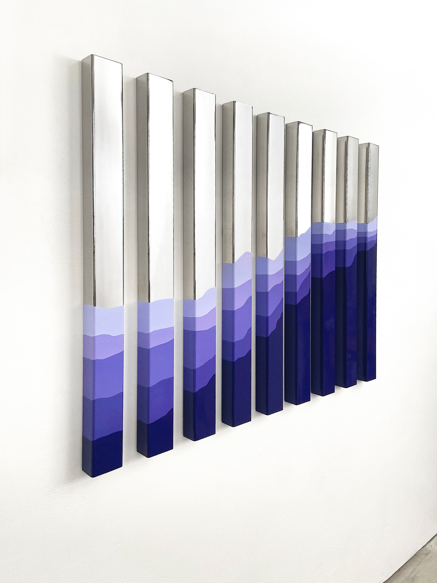 All of our polished stainless steel bar pieces are inspired by tide markings on pilings and remnants of infrastructure in waterways and ocean.