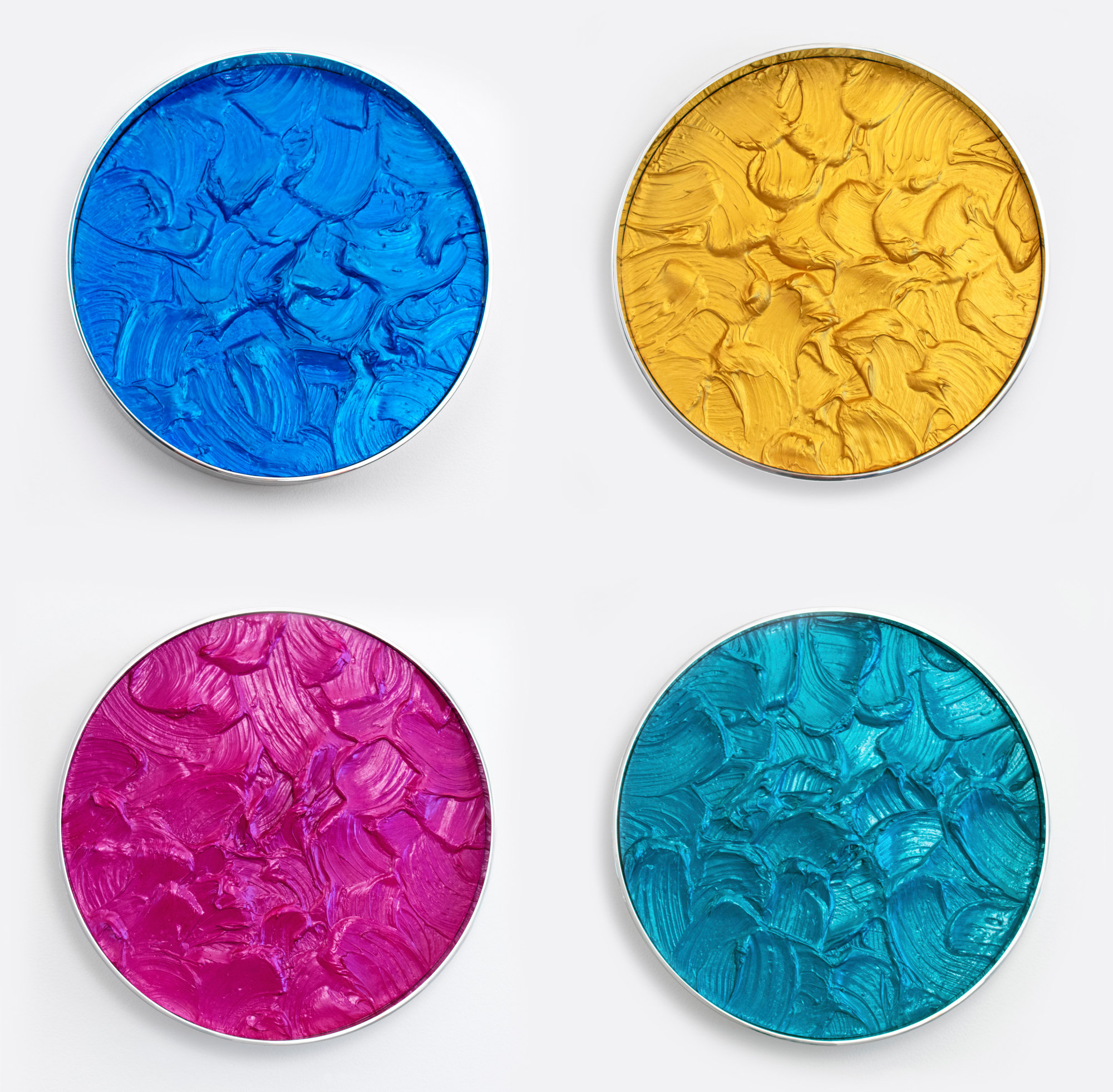 polished stainless steel with mixed media and enamel