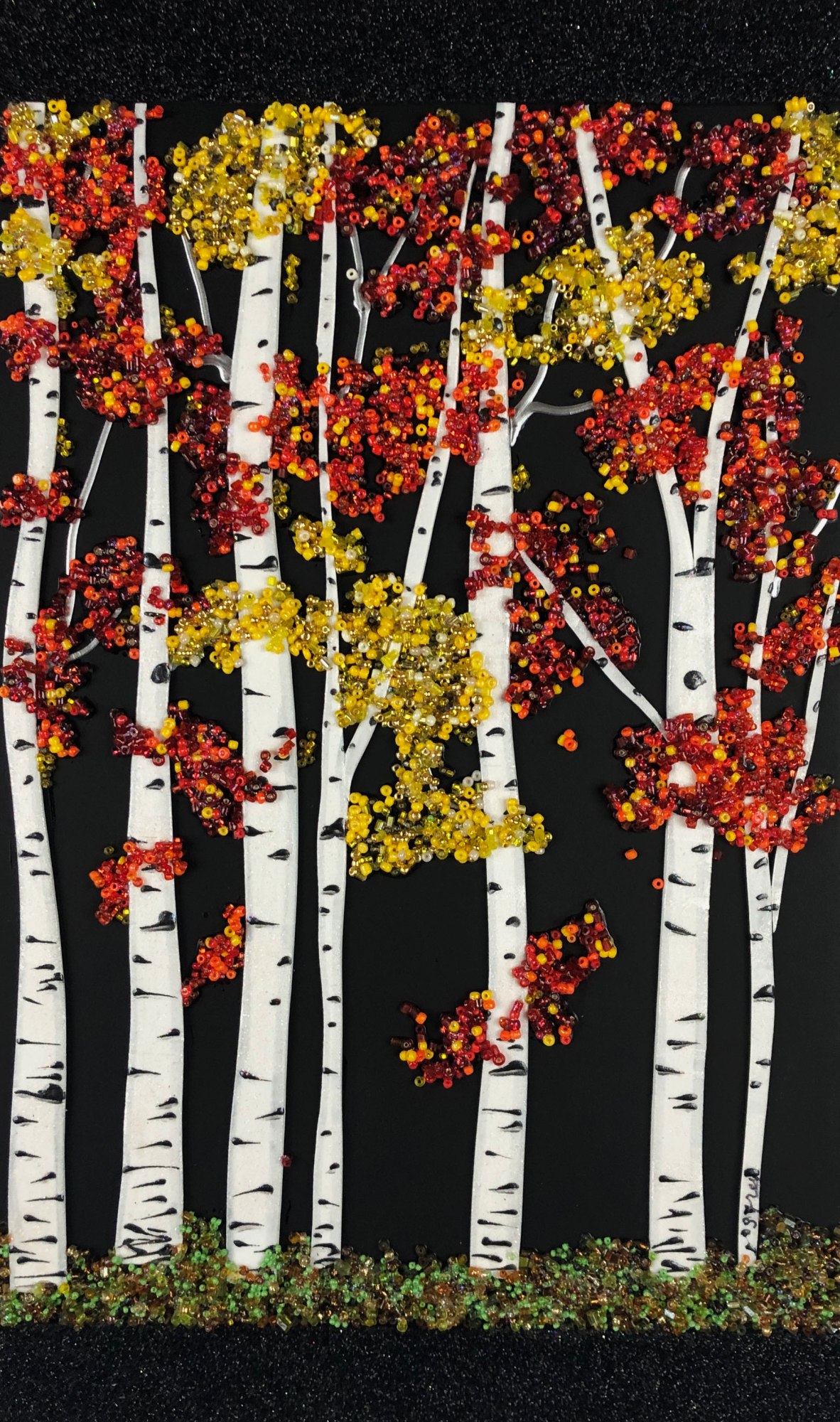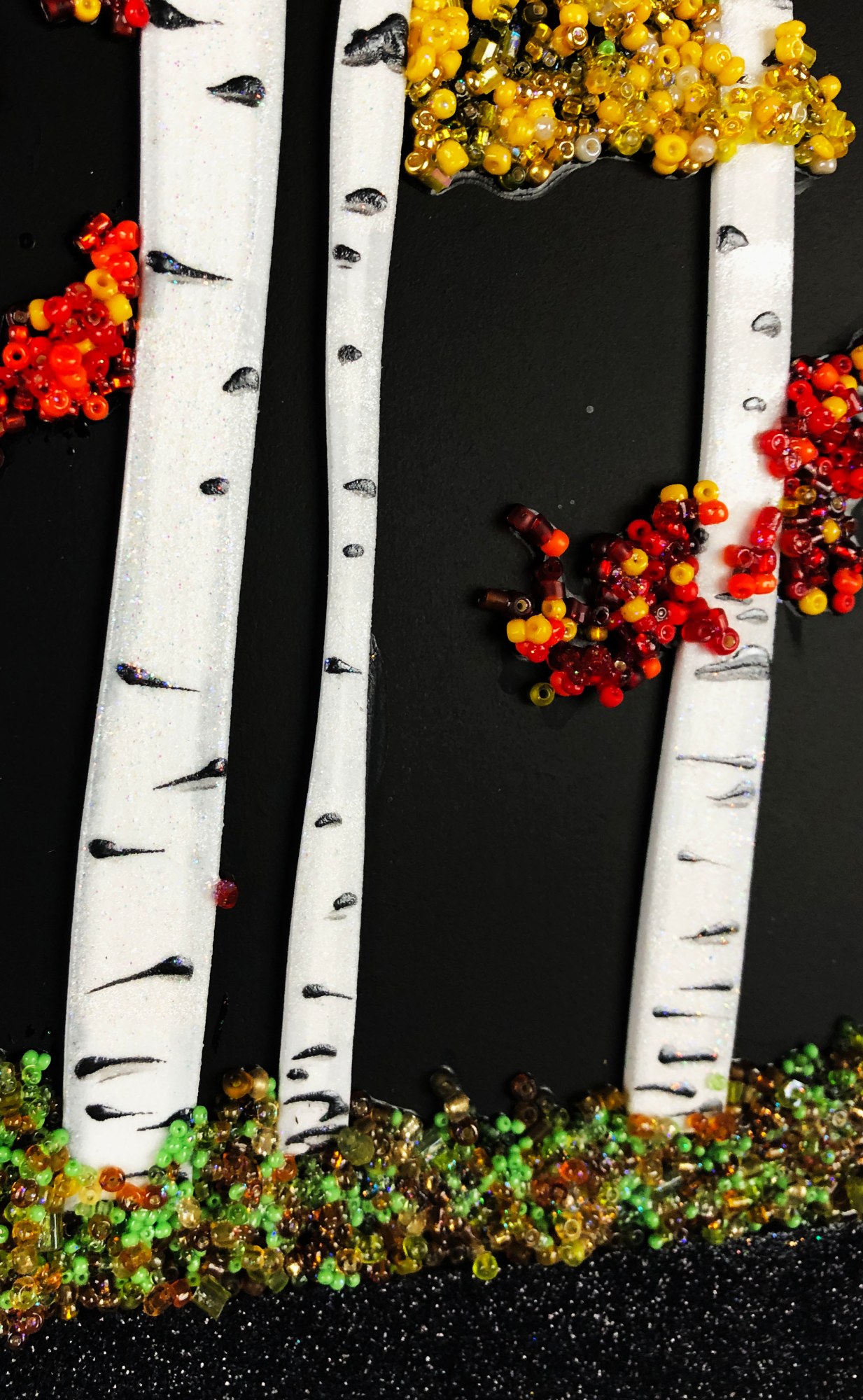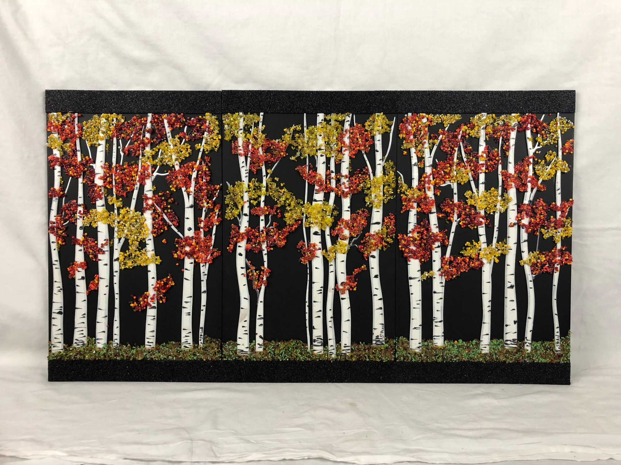 Aspen trees in the fall with red and yellow leaves. Matte black background. You can group several Aspen Deep pictures to create an entire forest, each is 11.5x8 with no outside frame.