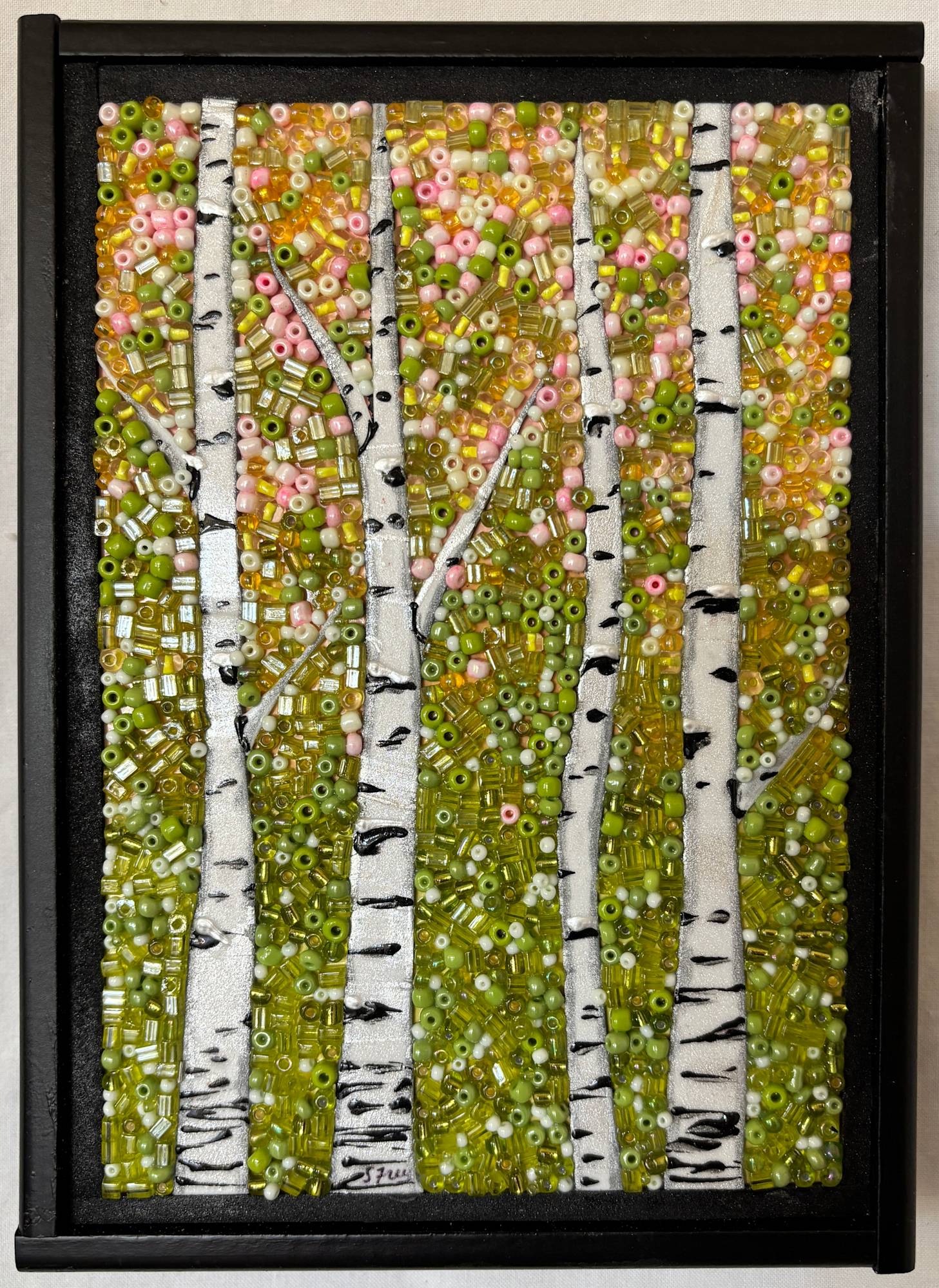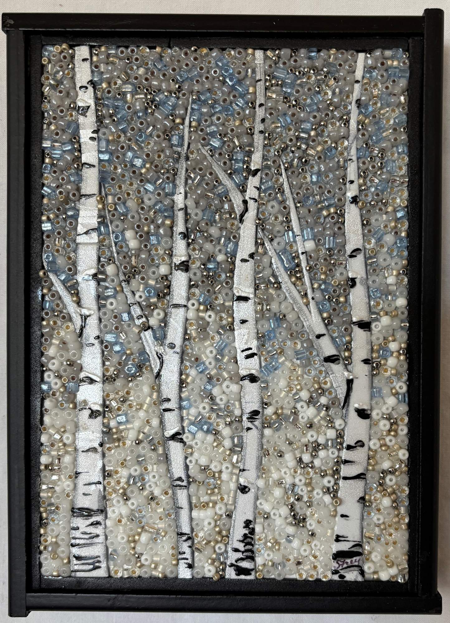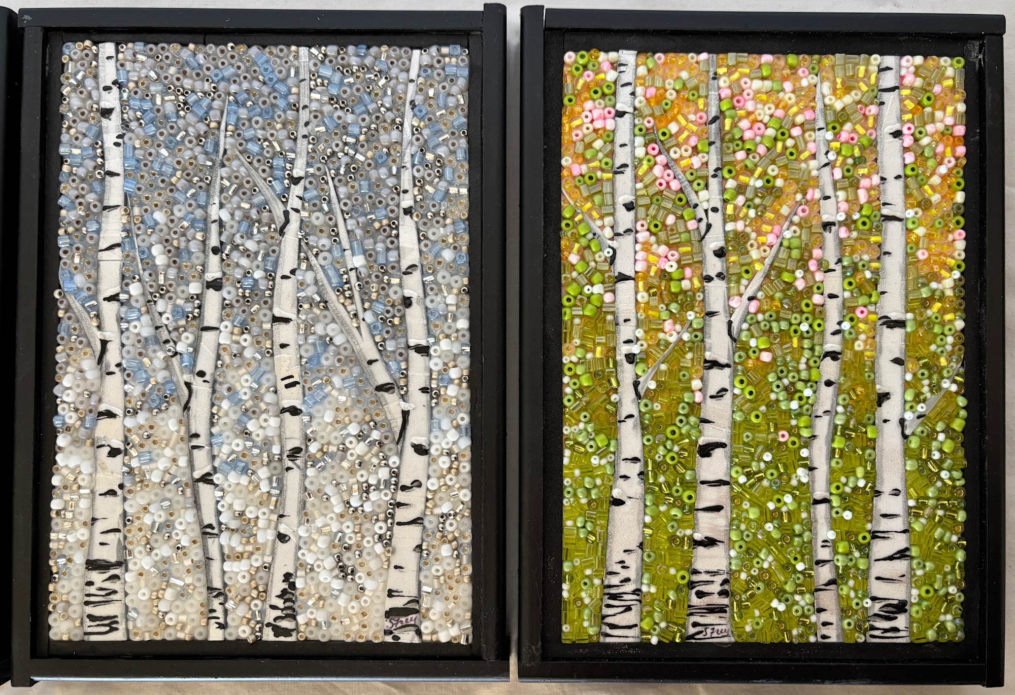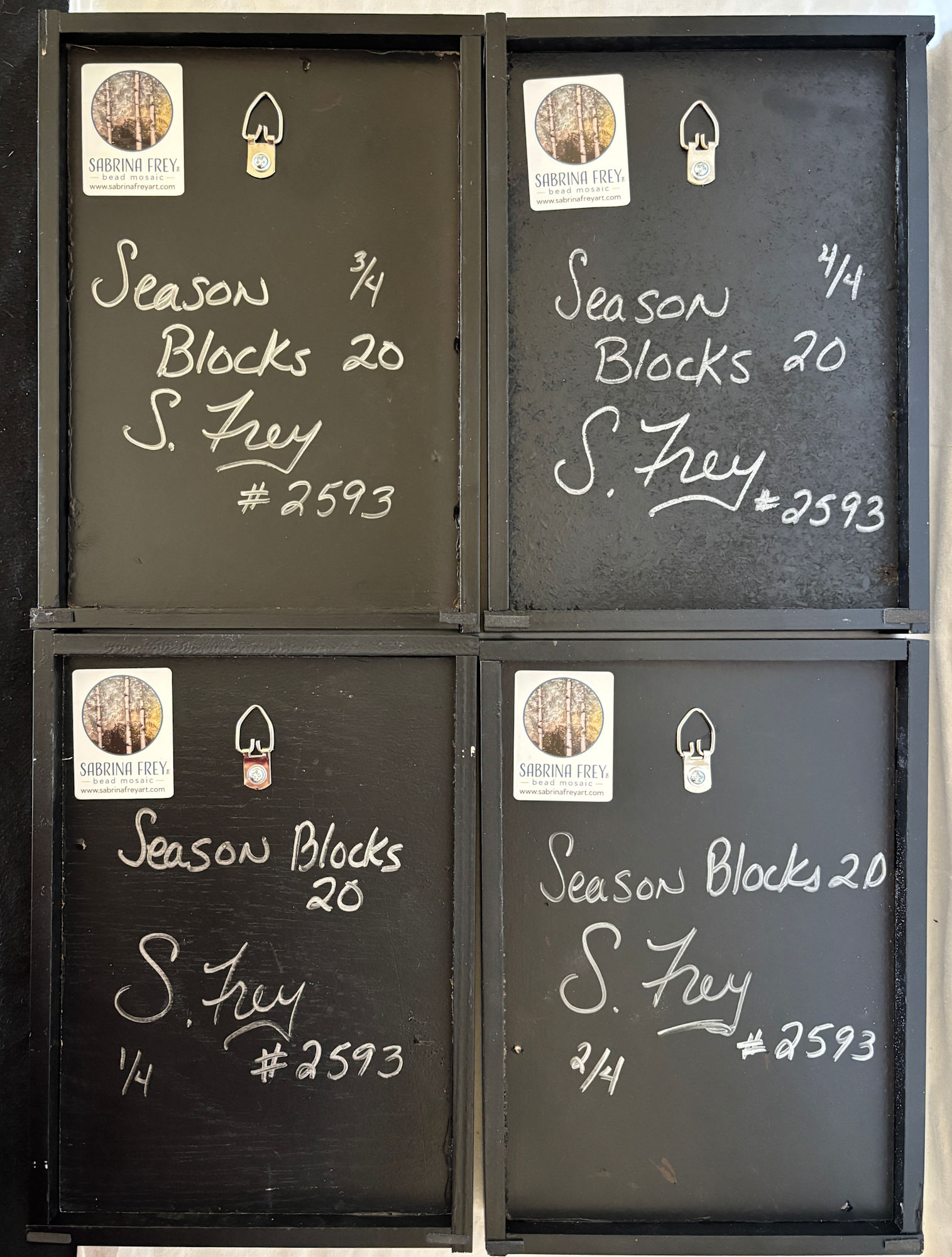 Set of four blocks 9x6x2 each with a tree scene in one of the four seasons and framed in Black.