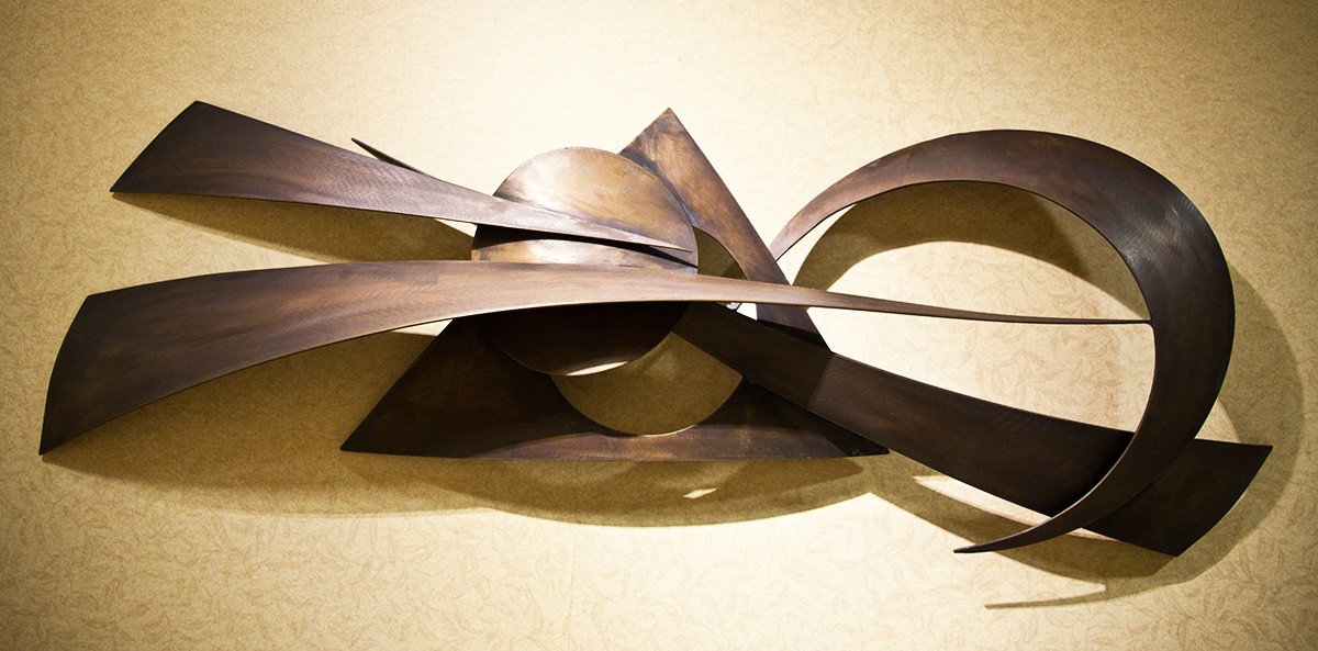 Wall-mount bronze sculpture of geometric plane forms