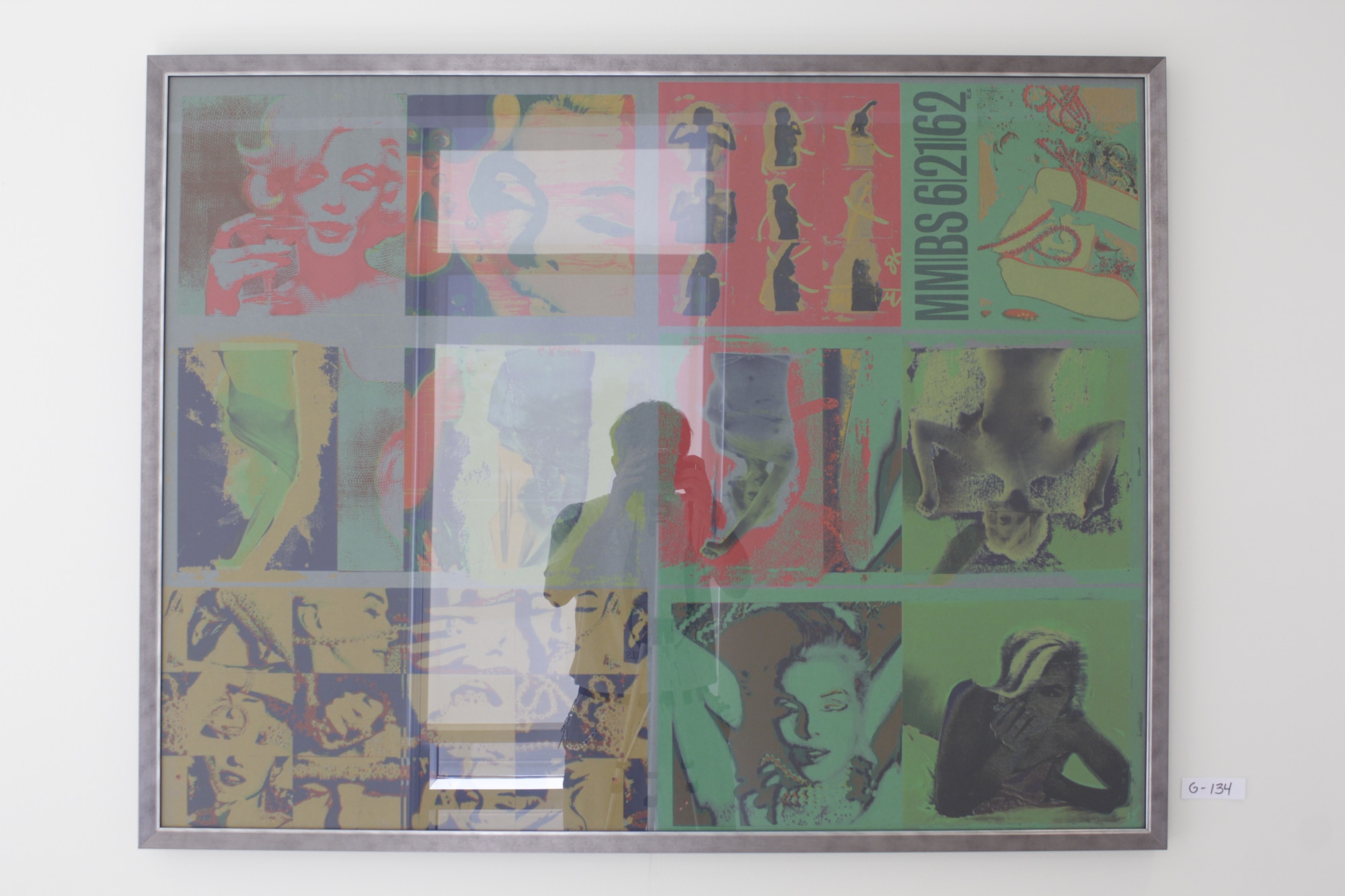 Warhol like limited edition serigraphs in green, red, and gold; grid of 12 images.