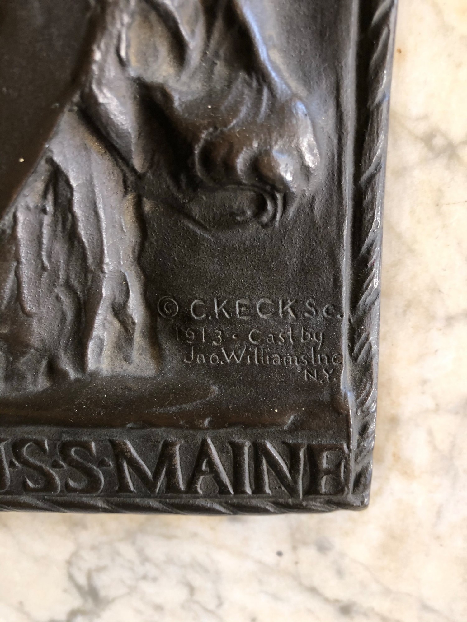 - Signature: signed and dated "C Keck Sc. 1913" and "Cast by Jno. Williams Inc N.Y." lower right