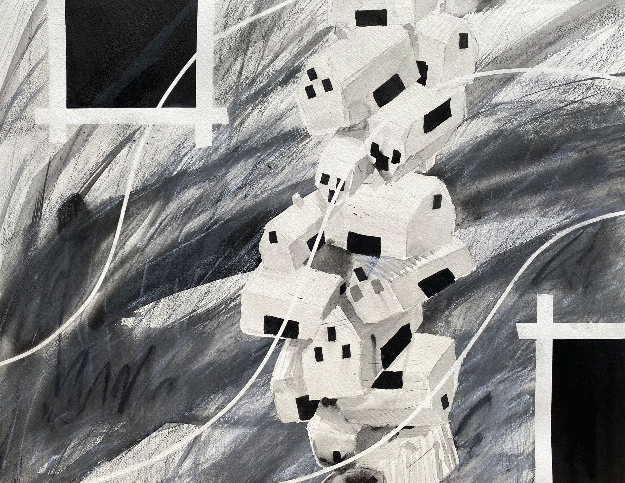 Sumi ink, charcoal, conti crayon, graphite, on paper