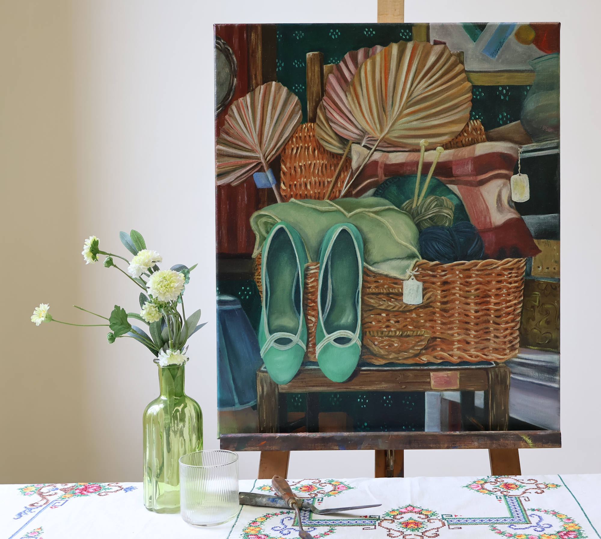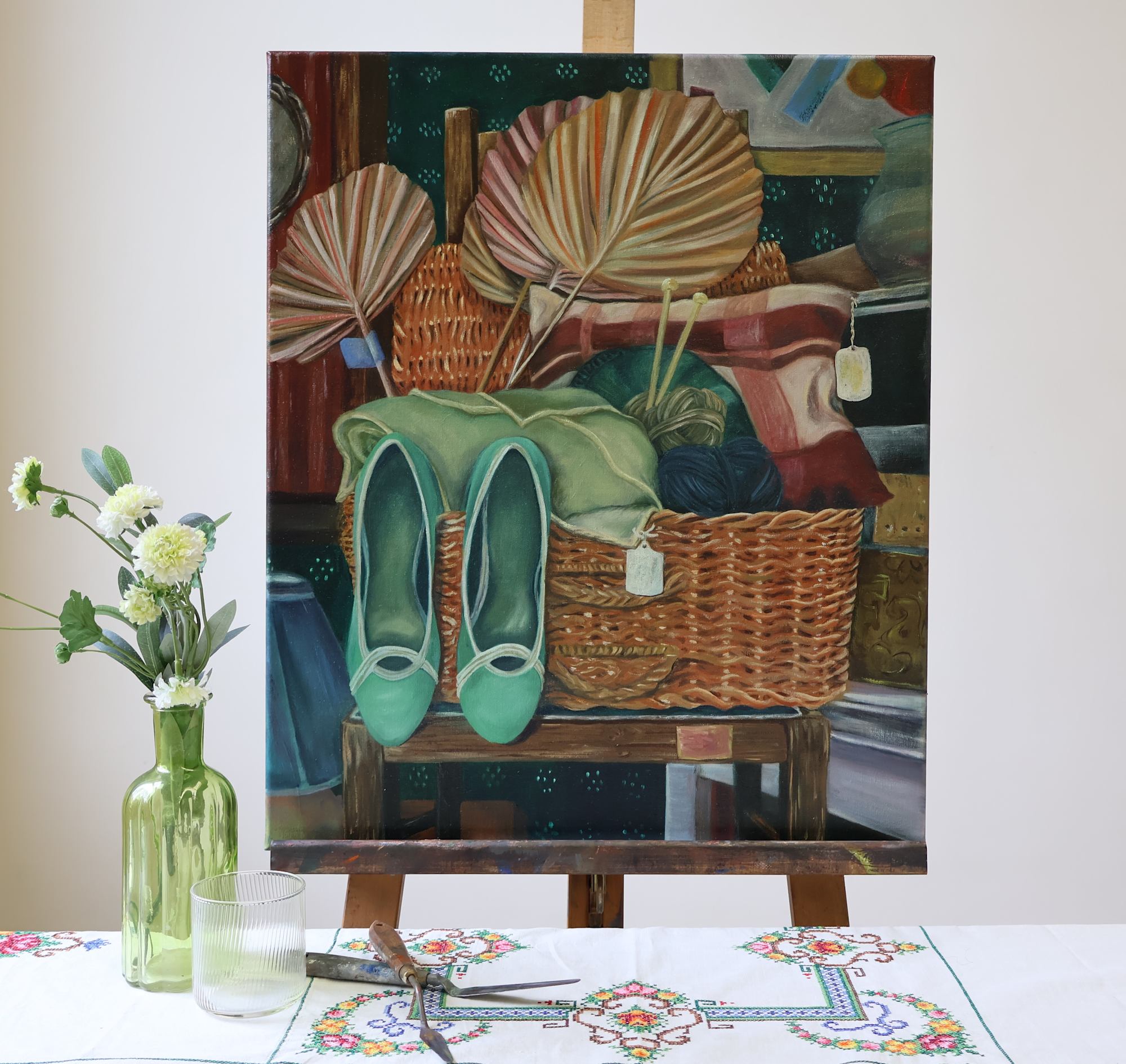My inspiration stems from my love of upcycling and second-hand shops, which I find rich with narrative beyond the thrill of a bargain, finding myself immersed in the lives of previous owners, the journey the 'still life' objects have taken and the potential for all trash to become a treasure once again.