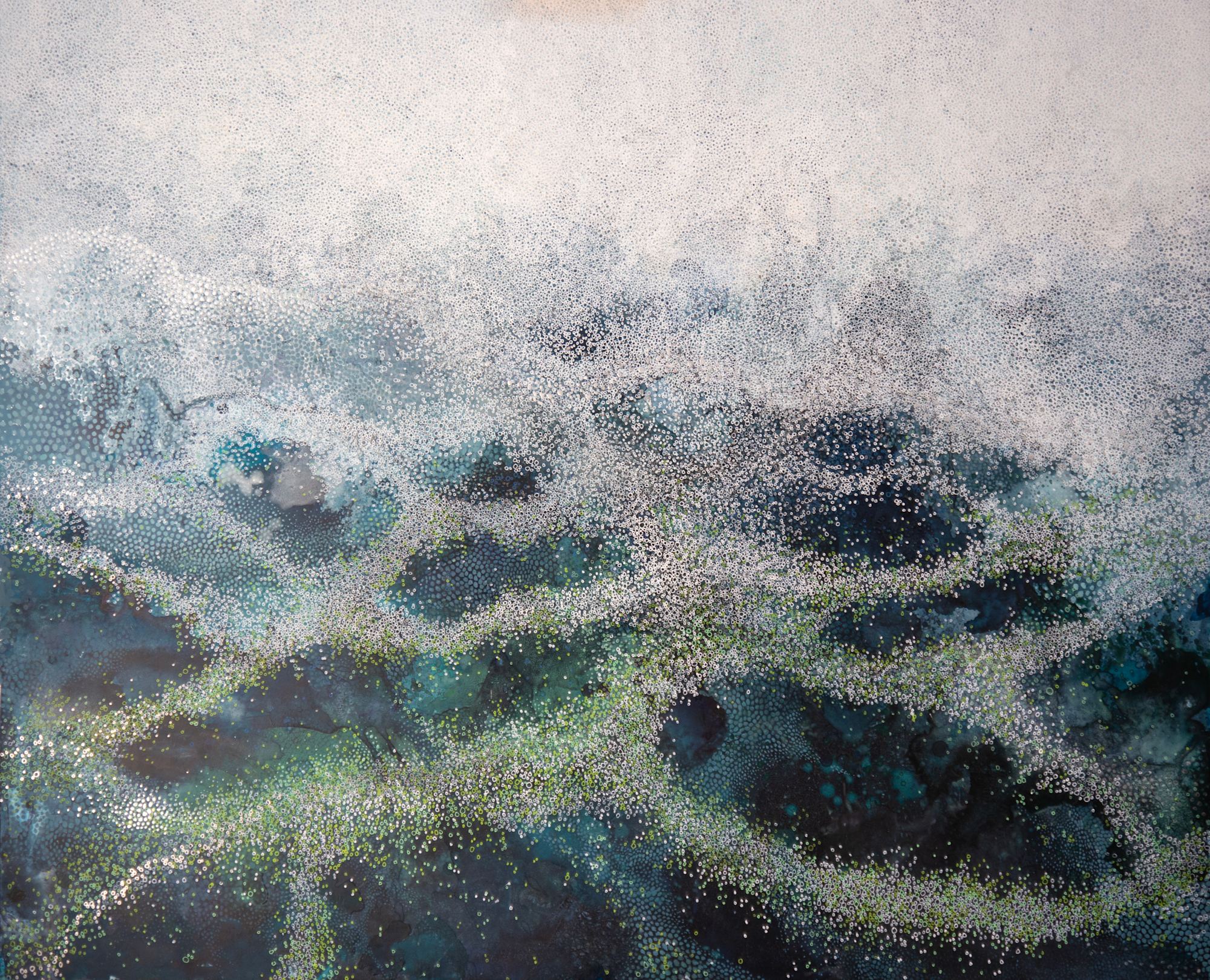 Acrylic, chrome ink and aluminium leaf on aluminium panel