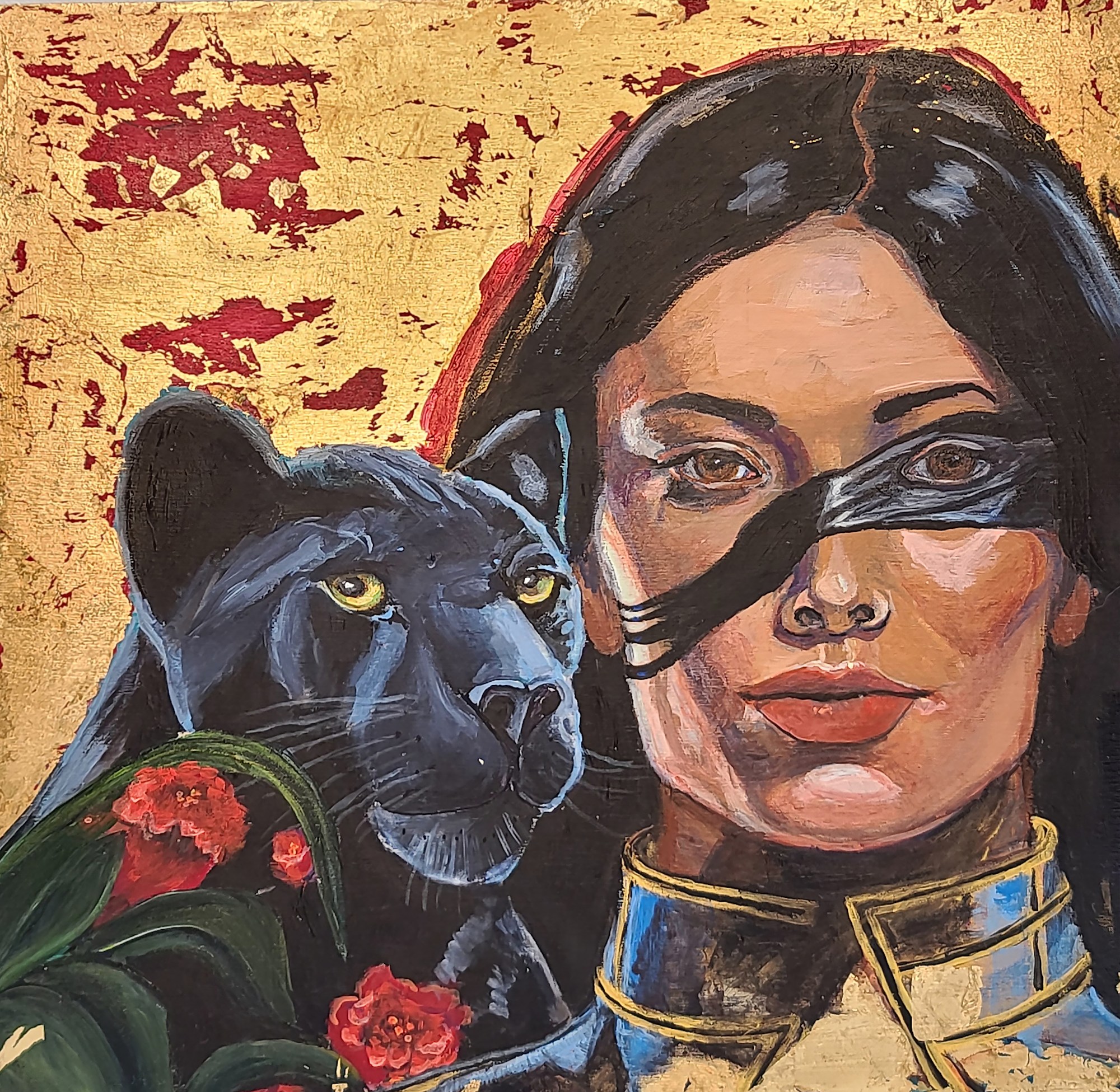 Sandra's vision is on the canvas, telling a story of courage and unity. "Panther Super Hero Woman" invites everyone to recognize their inner strength, embrace it, and embark on a journey toward a brighter future, hand in hand with our unique superpowers.