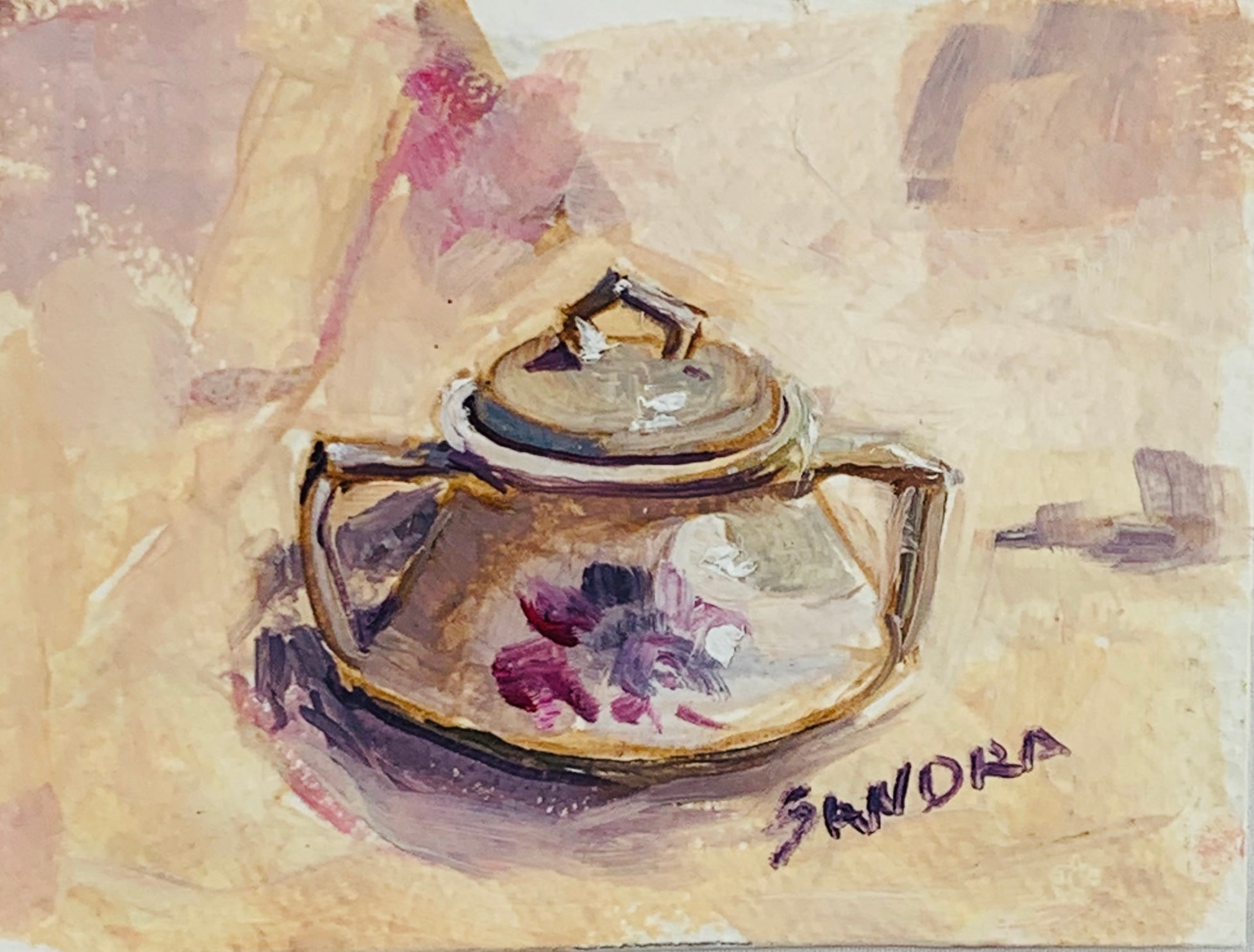 Sweets for the Sweets is a painting showing a sugar bowl. A little 5″x7″ acrylic painting the sugar bowl was my Mother-in-law Evelyn’s. I was thinking of her one day and how sweet she was to everyone and decided to paint it. Evelyn was from West Virginia and her language was always proper and pleasing. Our current language is different today. Not that one way is better than another it is just different and I loved the way she expressed herself.