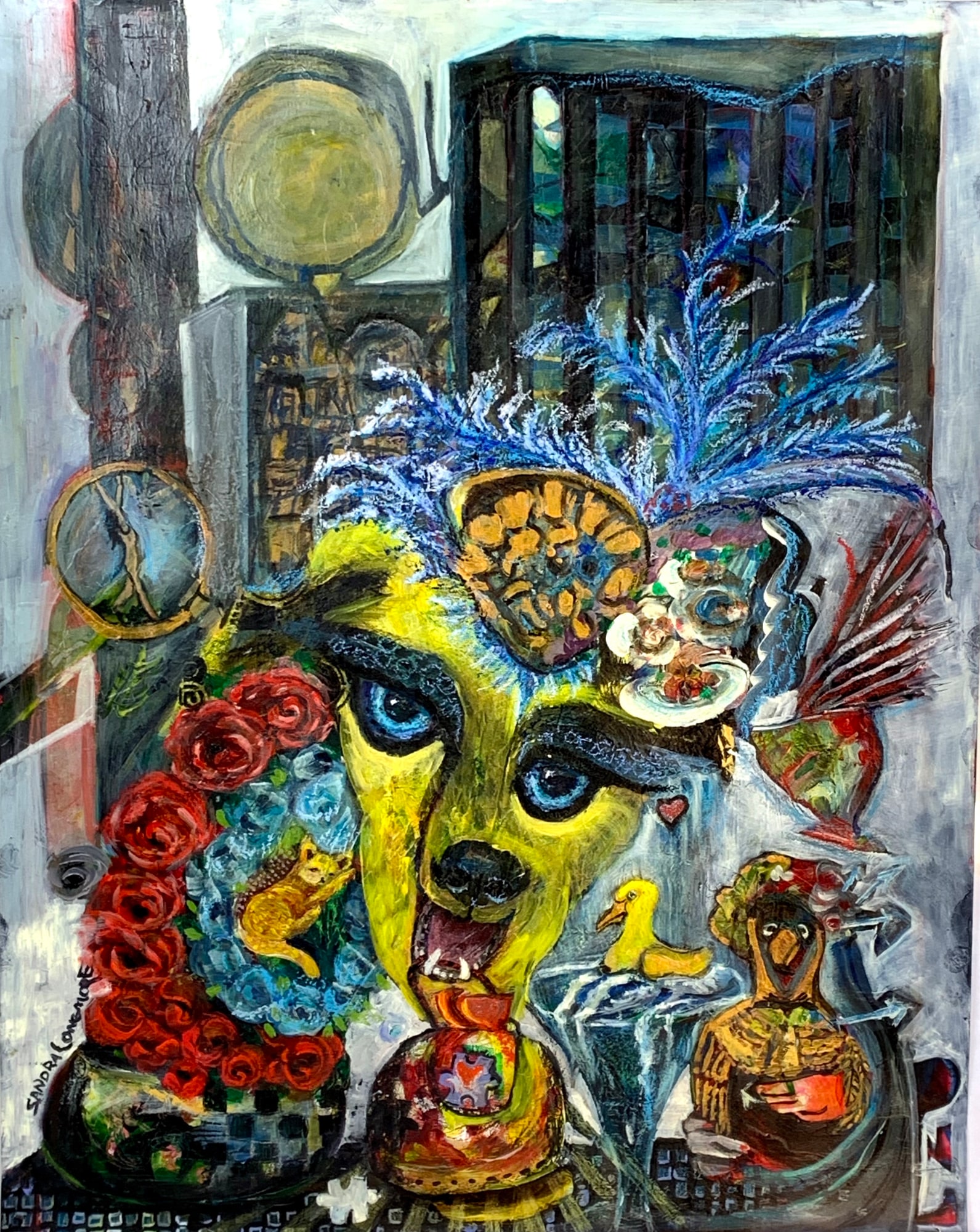 Magical fun times with dogs, Cats, Birds, and other fun critters. This painting is a storytelling inspirational machine. You will have fun using your own imagination to make up your own stories to tell yourself and others.