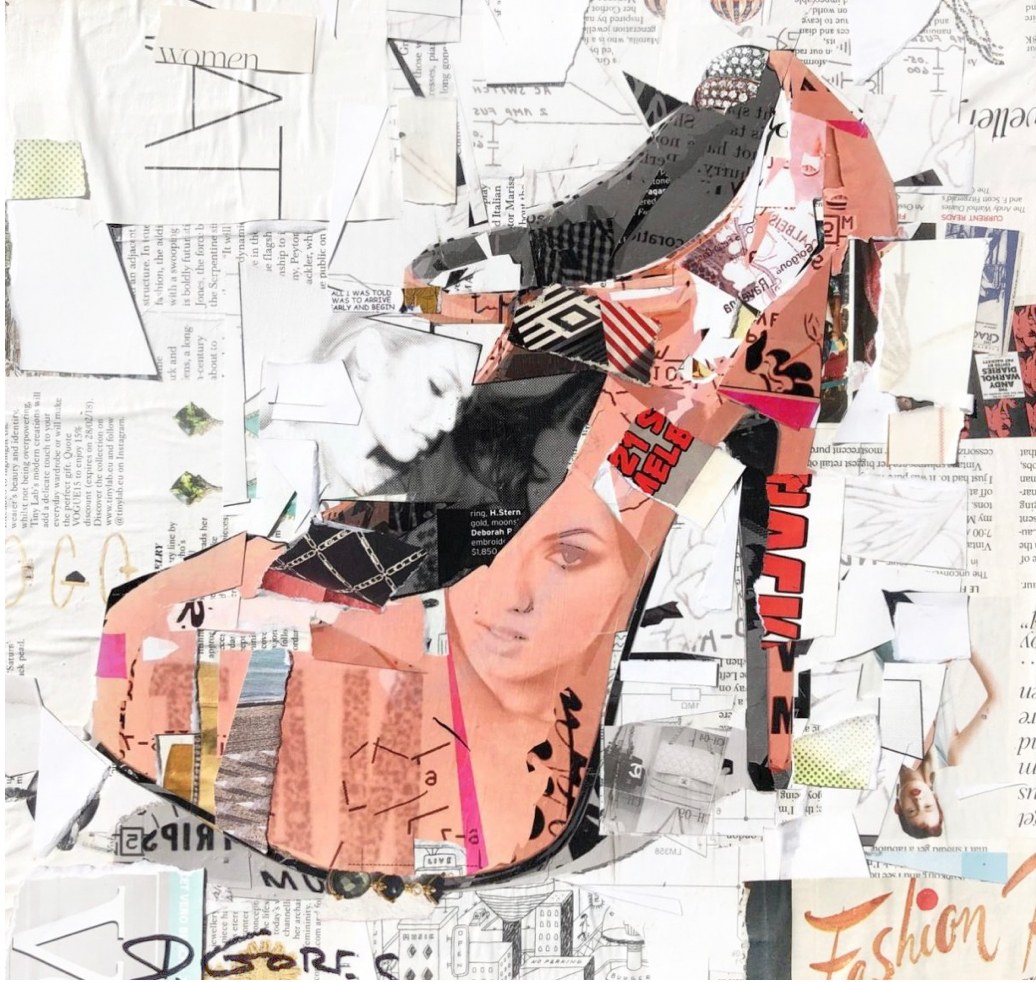 Derek Gores creates his lush portraits in collage out of recycled magazines, maps, advertisements and any other paper goods he can get his hands on. Considered part of the New Contemporary Movement, his work has a post-warhol sensibility that in a new context, even the disposable magazine can contribute to a lasting moment. His works are one thing from afar, but as the viewer gets closer the image melts into a utopia of poetic moments - often the opposite of what we thought we understood from across the room.