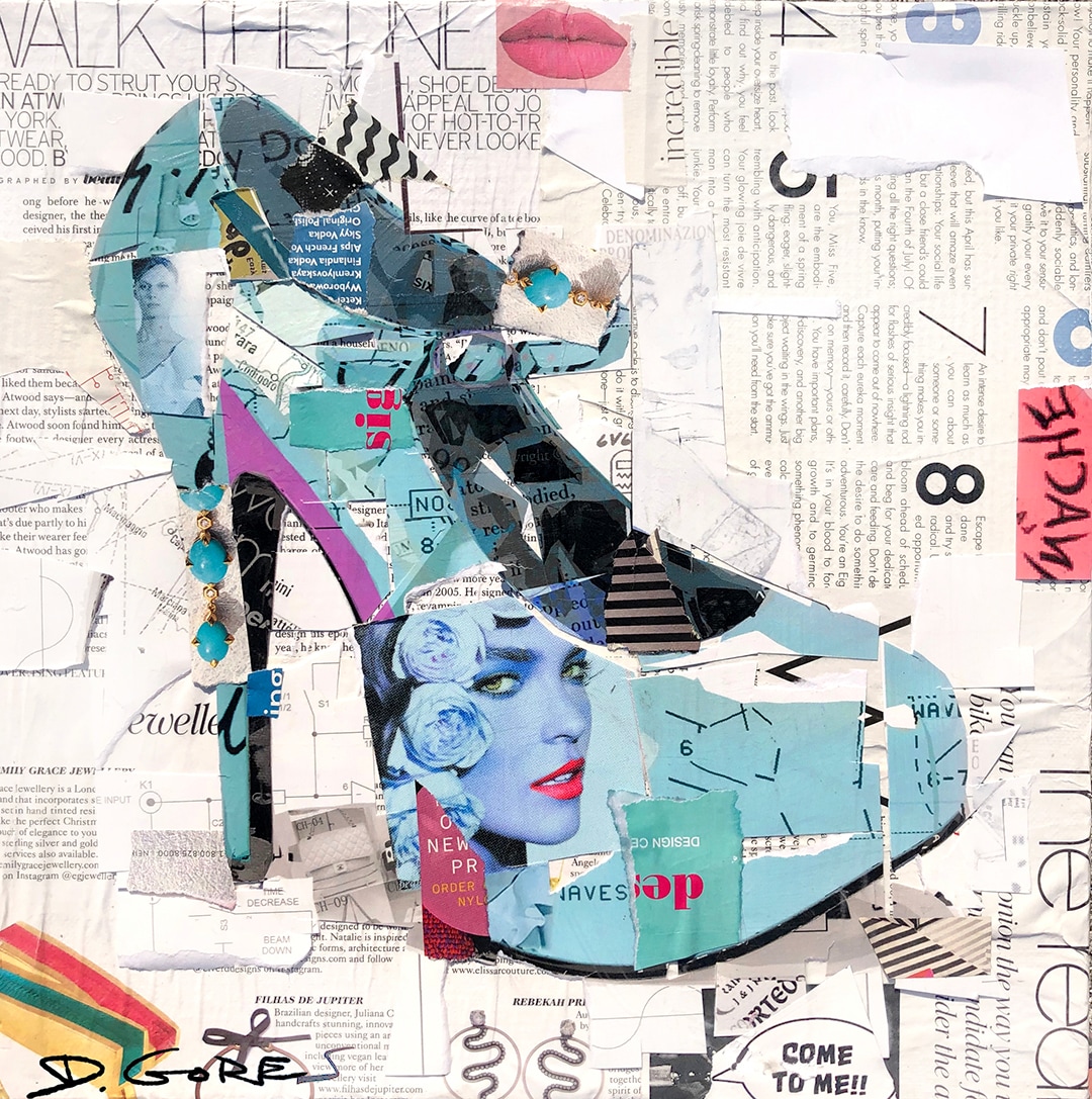 Derek Gores creates his lush portraits in collage out of recycled magazines, maps, advertisements and any other paper goods he can get his hands on. Considered part of the New Contemporary Movement, his work has a post-warhol sensibility that in a new context, even the disposable magazine can contribute to a lasting moment. His works are one thing from afar, but as the viewer gets closer the image melts into a utopia of poetic moments - often the opposite of what we thought we understood from across the room.