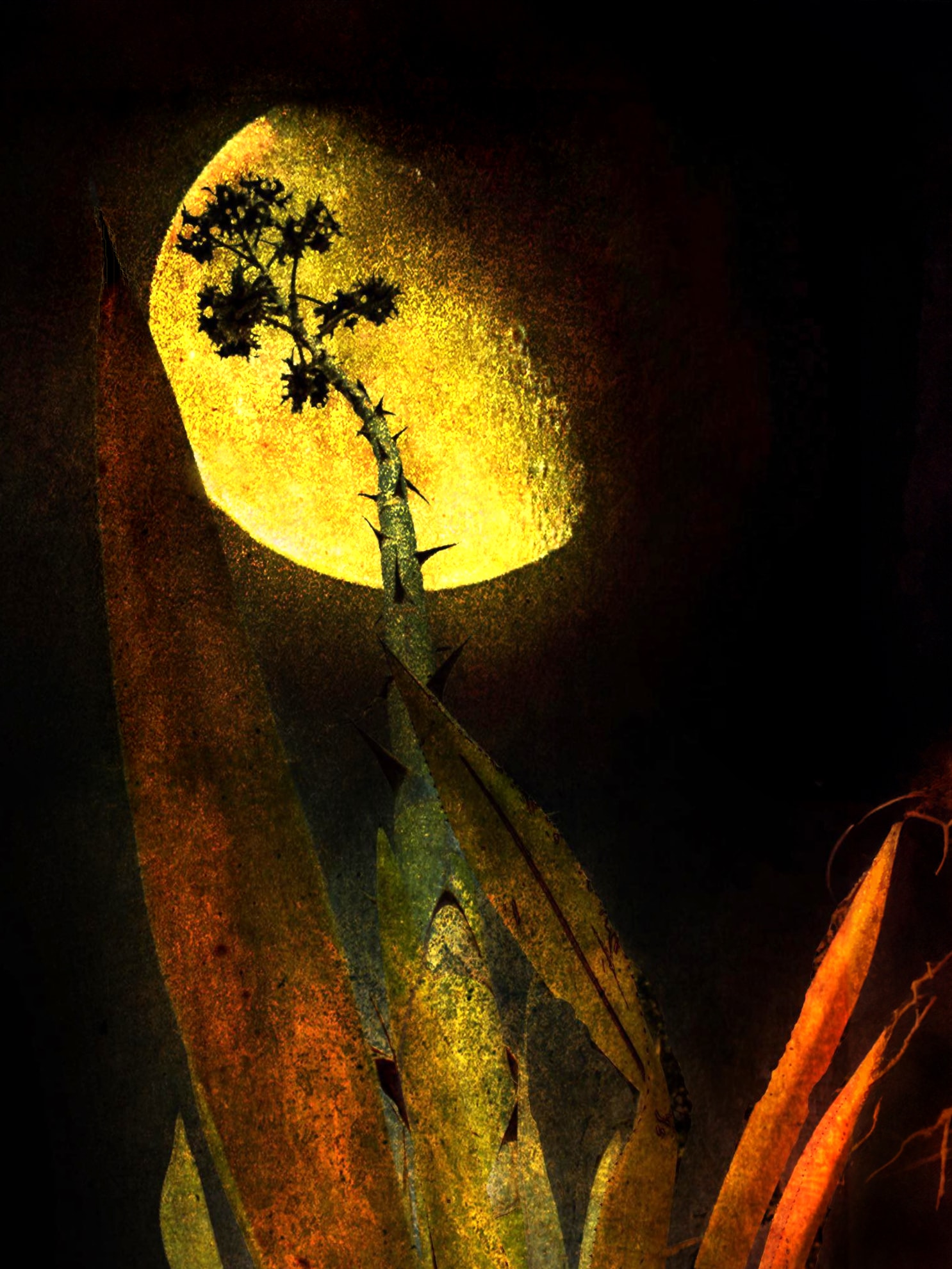 Fine Art Photograph of an Agave (Century Plant) blooming under the Harvest Moon. Agaves sometimes only bloom once in 100 years, hence the nickname! This was created with texture which enhances the visual experience.
