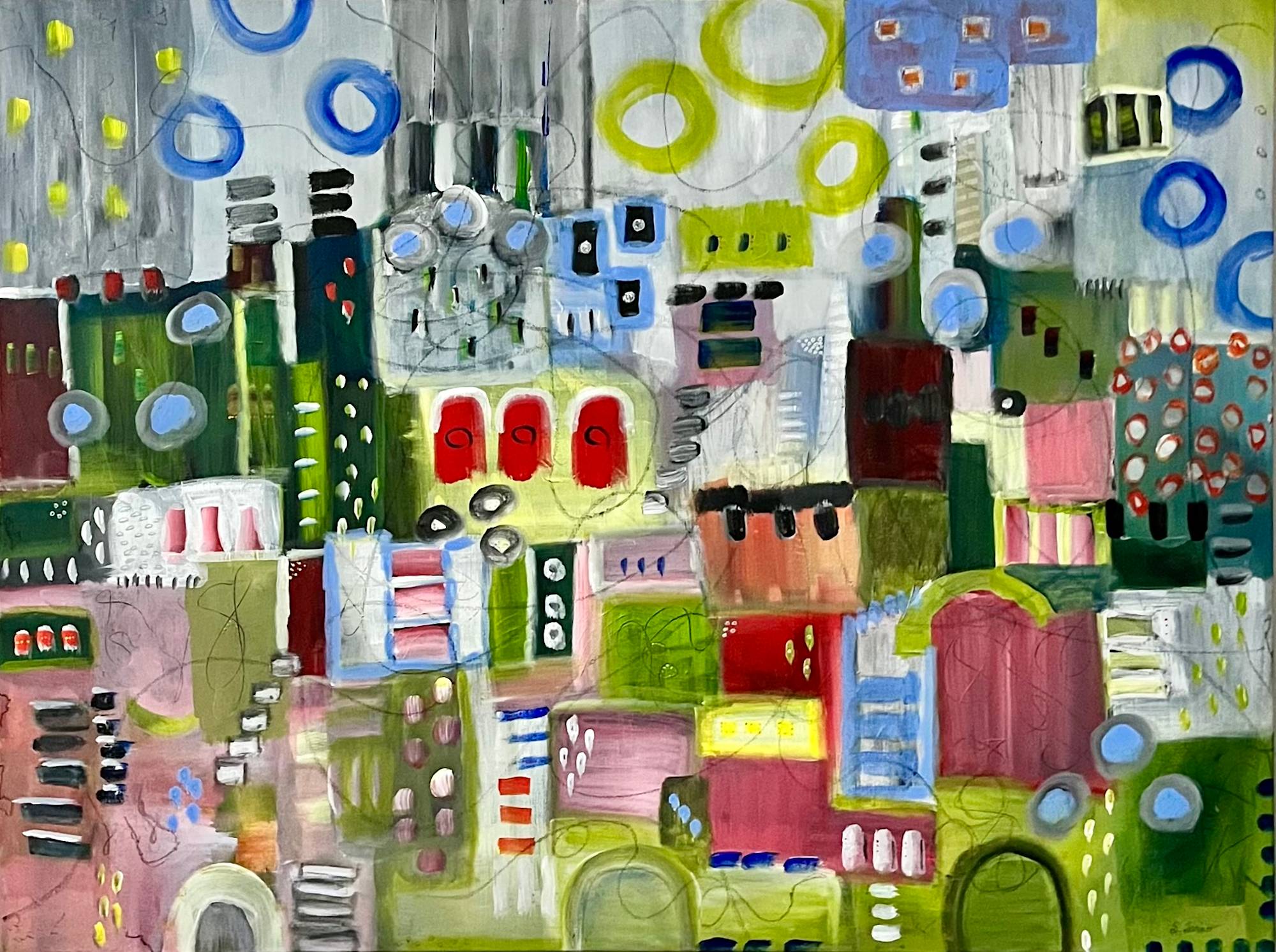 30x40x1.5 gallery wrapped canvas original mixed media abstract painting titled “Journey”. Sides are painted matching the design.