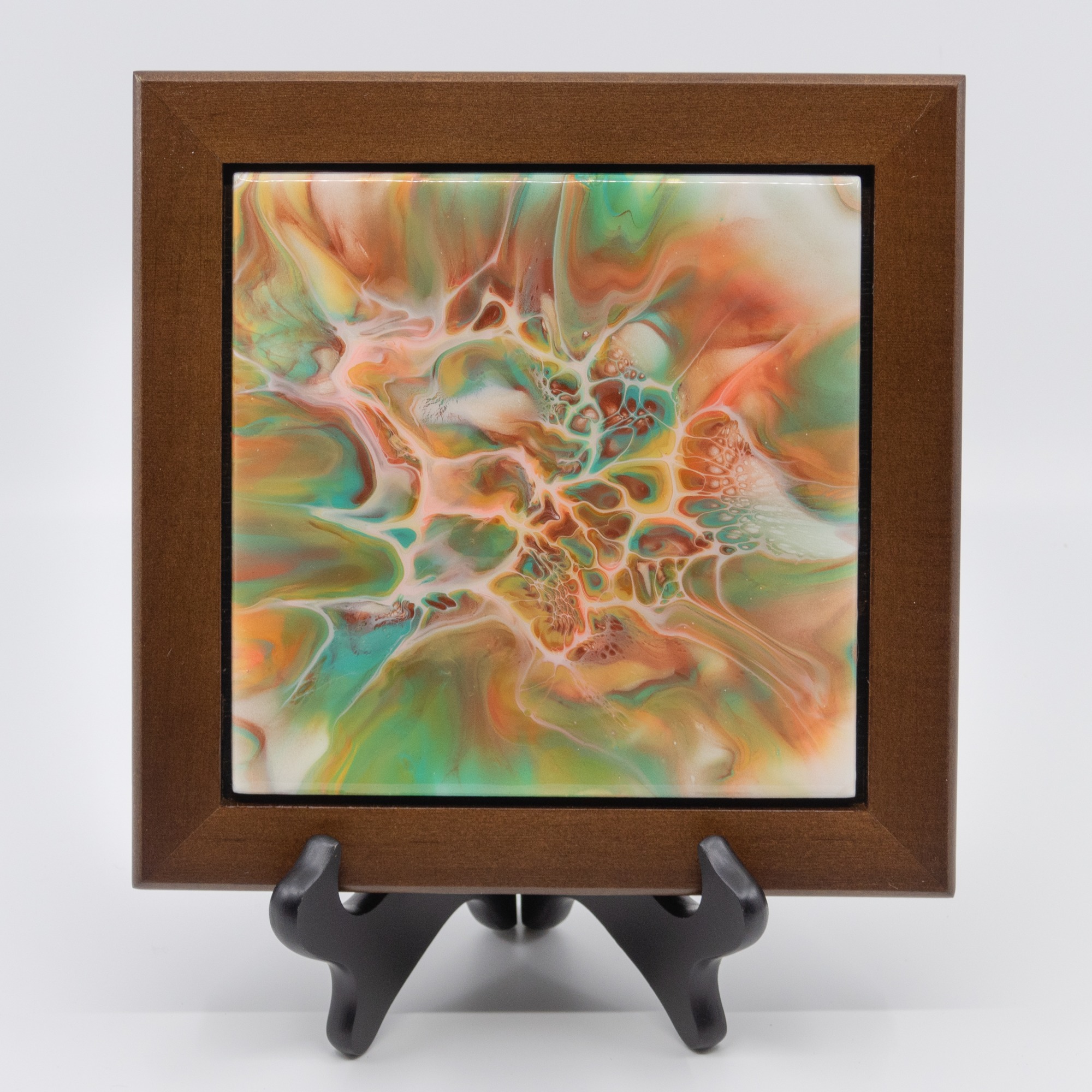 This art involves applying paint in four layers on a commercial tile. These layers involve eggshell house paint as a "Pillow"; the "Pouring Medium" consisting of varnish, fine art acrylic paints in various colors and/or colored mica powdered pigments, and an untinted paint; the "Cell Activator" consisting of Australian Floetrol and Amsterdam (white or black) artist acrylic paint.