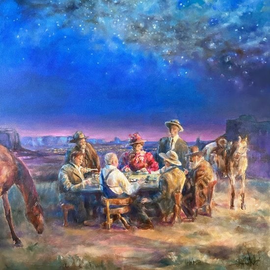 Painting based on historical photographs from the American West.