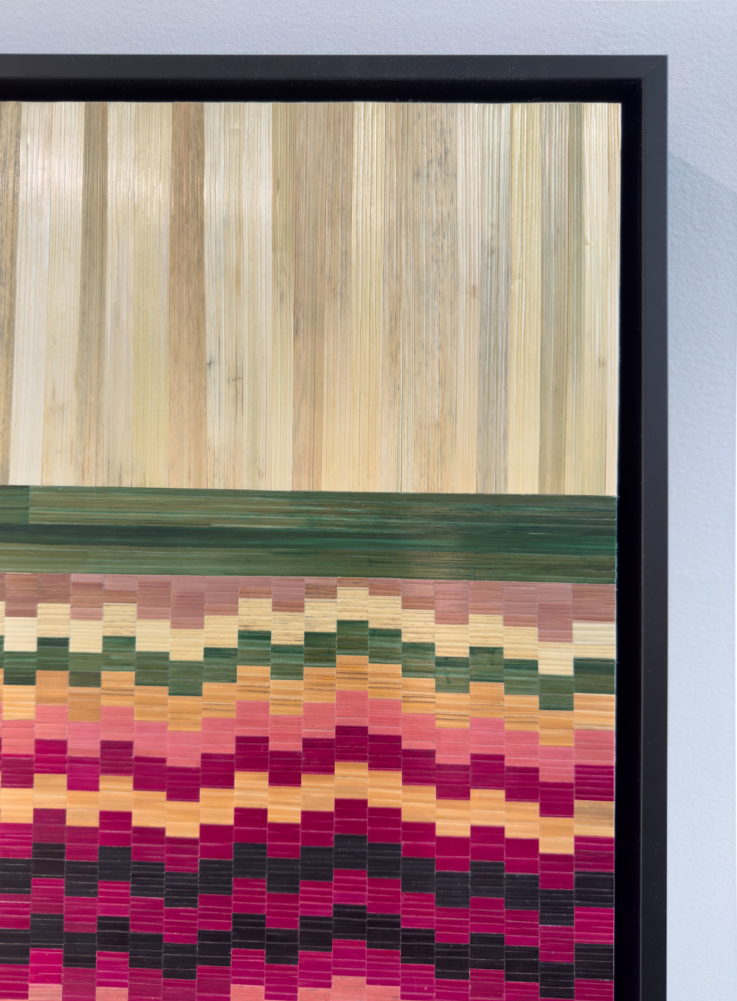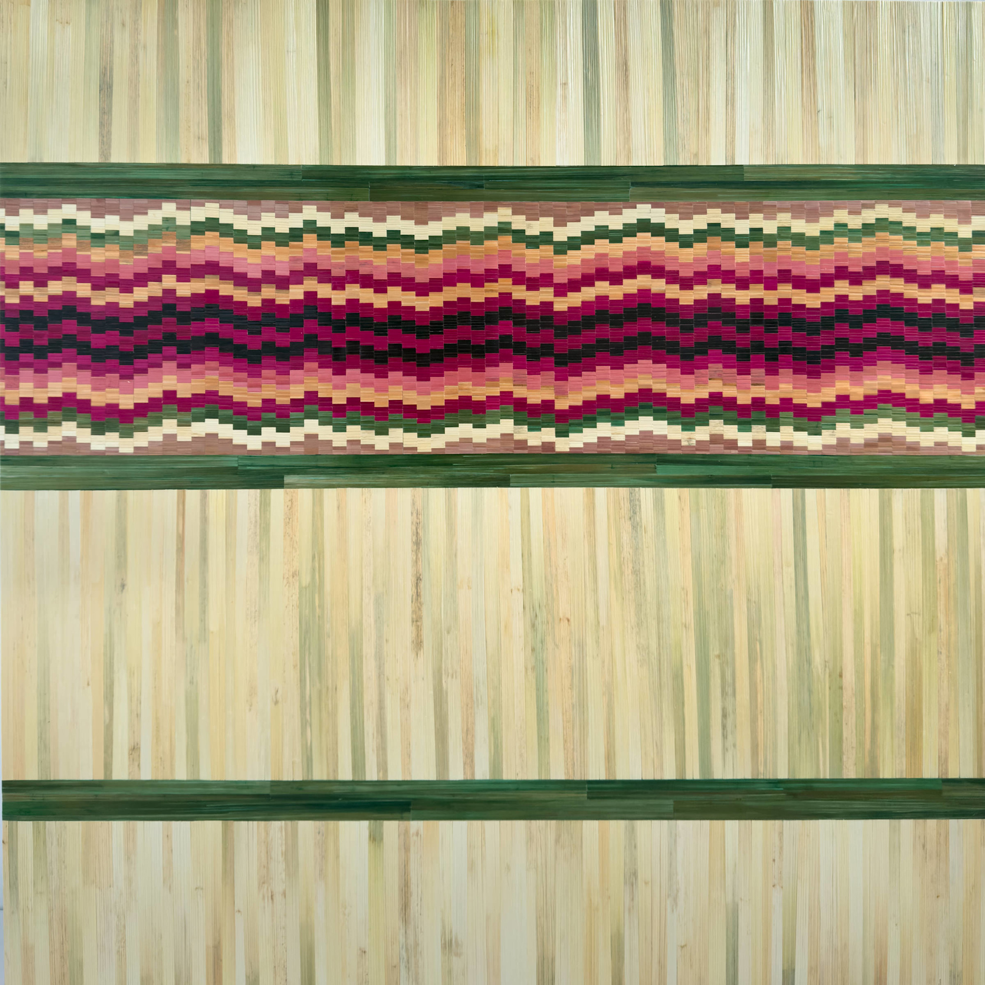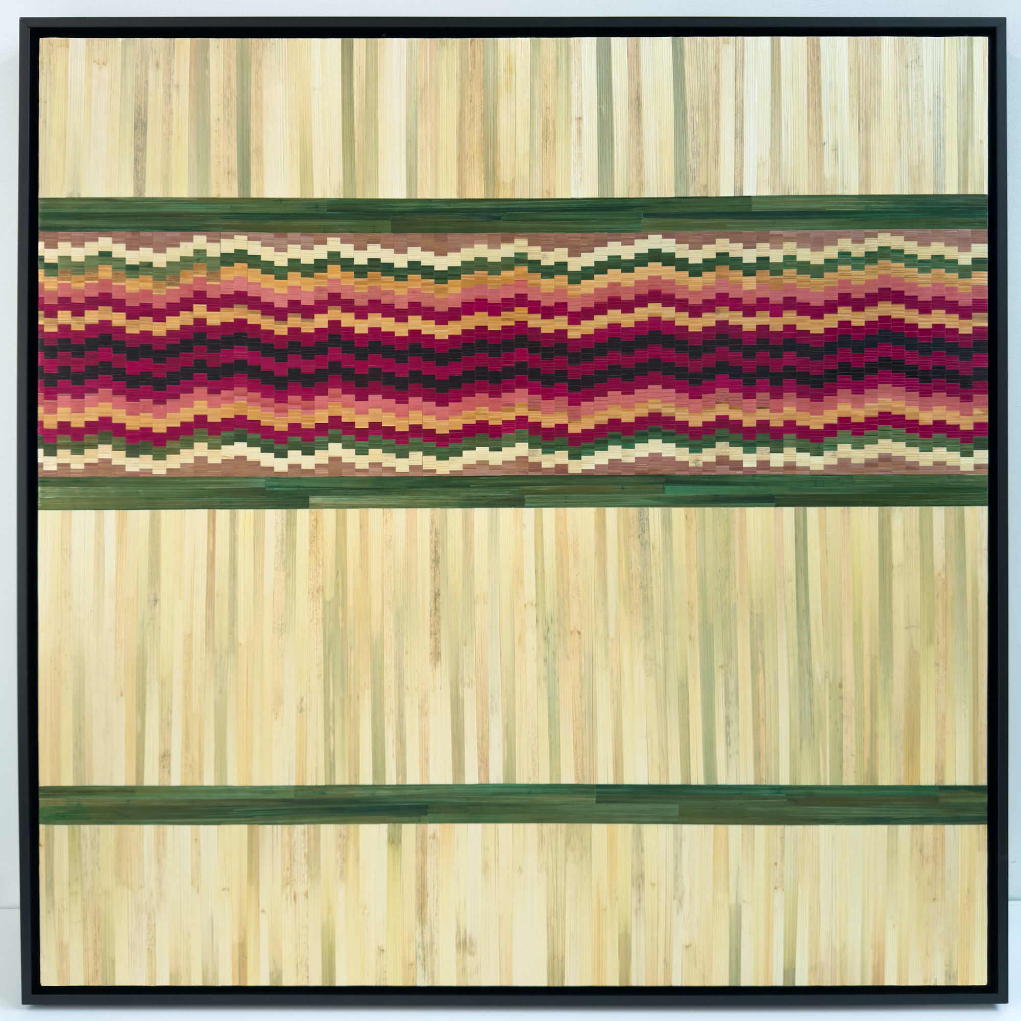 "Rich Inner Life #1" and "Rich Inner Life #2" were inspired by the intricate artistry of Bargello needlework. And while they each exude a calm simplicity, the vibrant band suggests a more complex world if one is curious enough to explore.