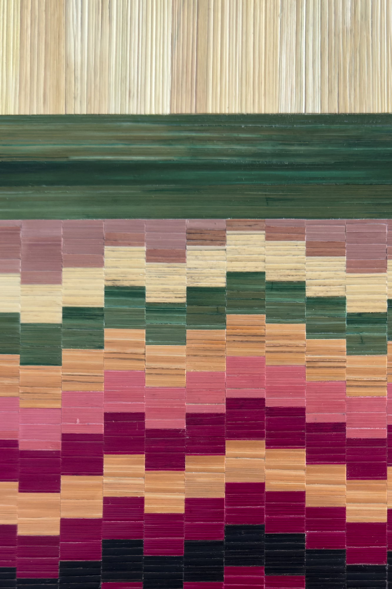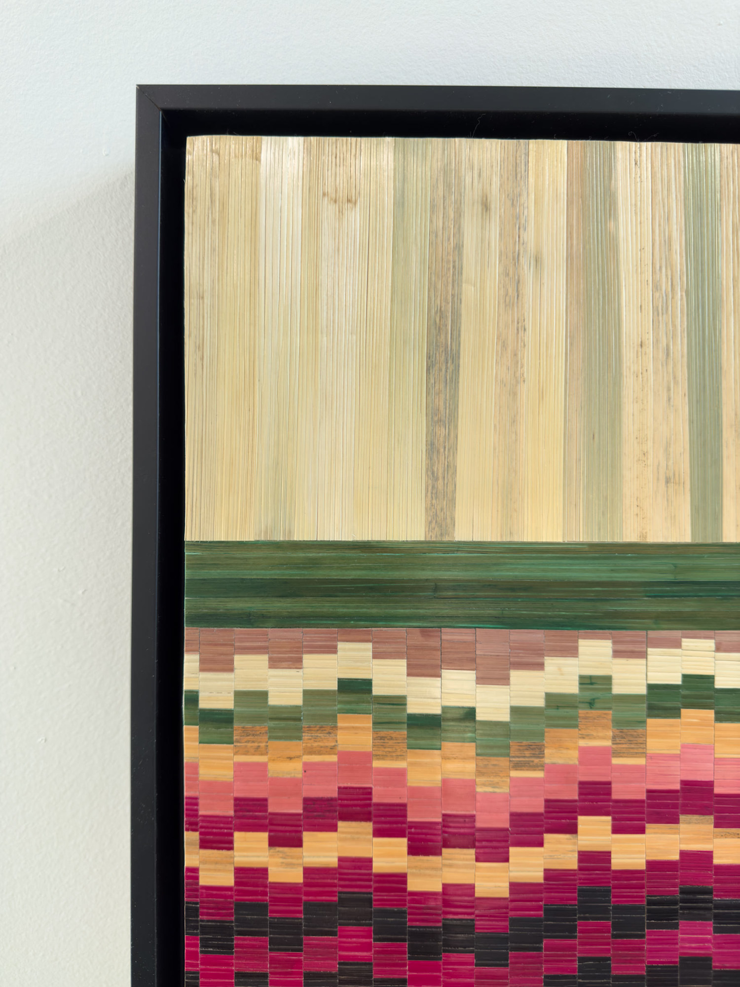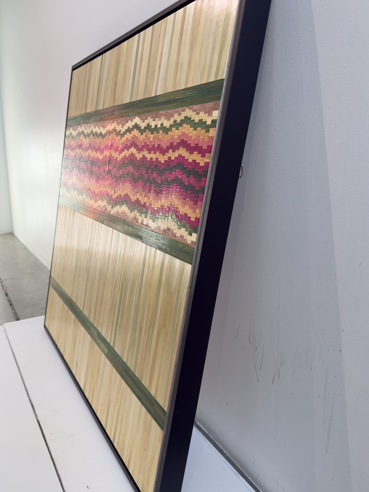 "Rich Inner Life #1" and "Rich Inner Life #2" were inspired by the intricate artistry of Bargello needlework. And while they each exude a calm simplicity, the vibrant band suggests a more complex world if one is curious enough to explore.