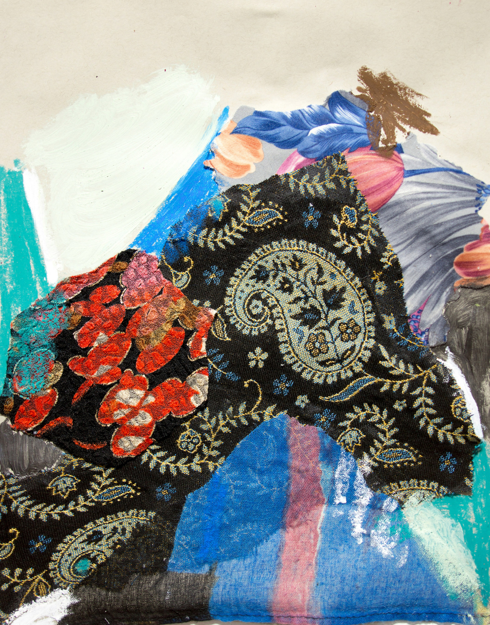 fabric and oil on paper