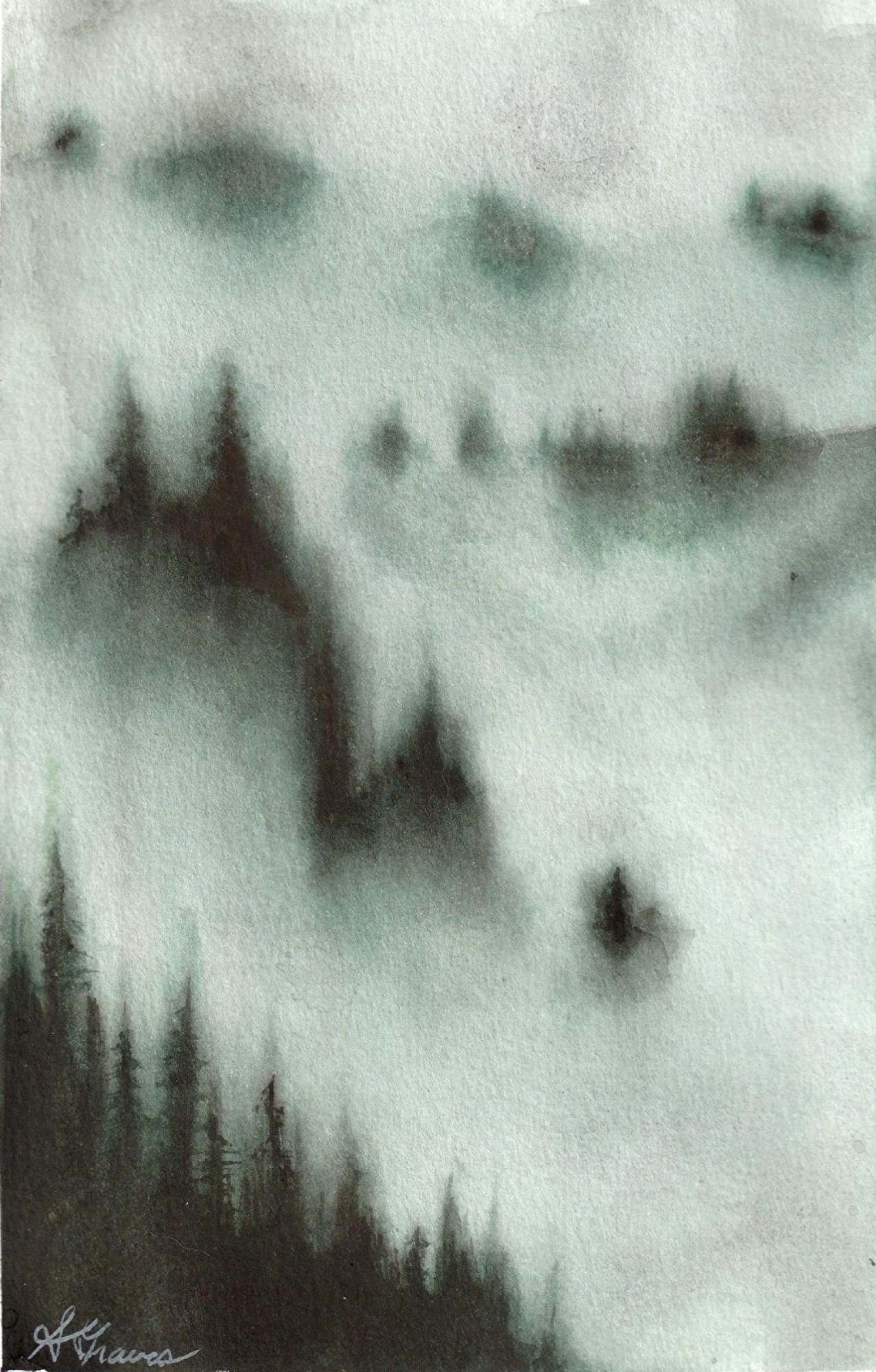 watercolor, mounted to gessoed birch, hang ready, with wax protectant, purple floating heartwood frame.