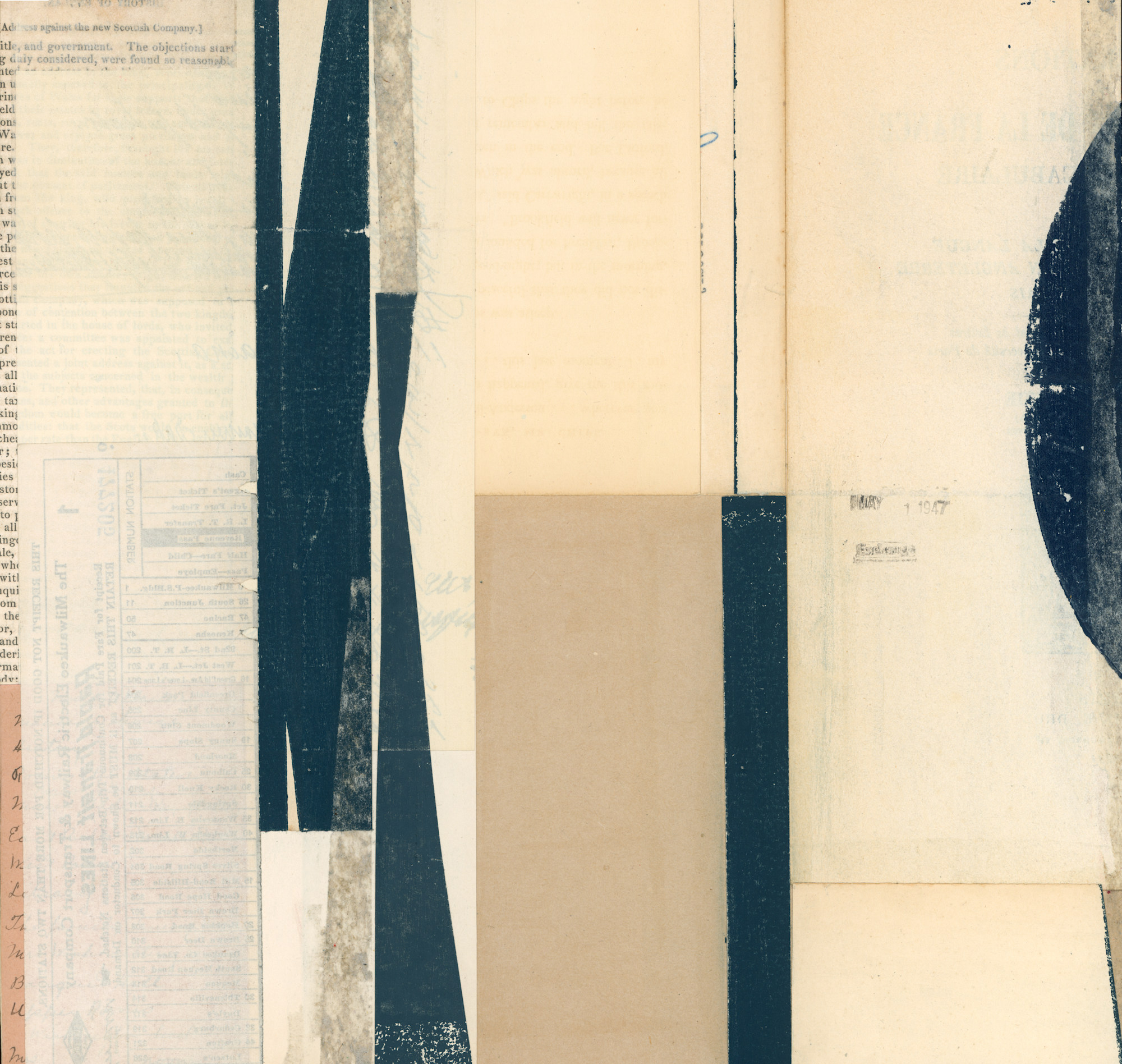 I create contemporary abstract collages using letterpress-printed vintage papers.