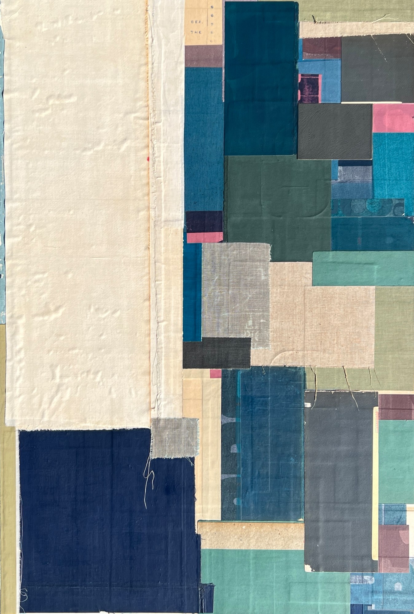 I create contemporary abstract collages using letterpress-printed vintage papers.