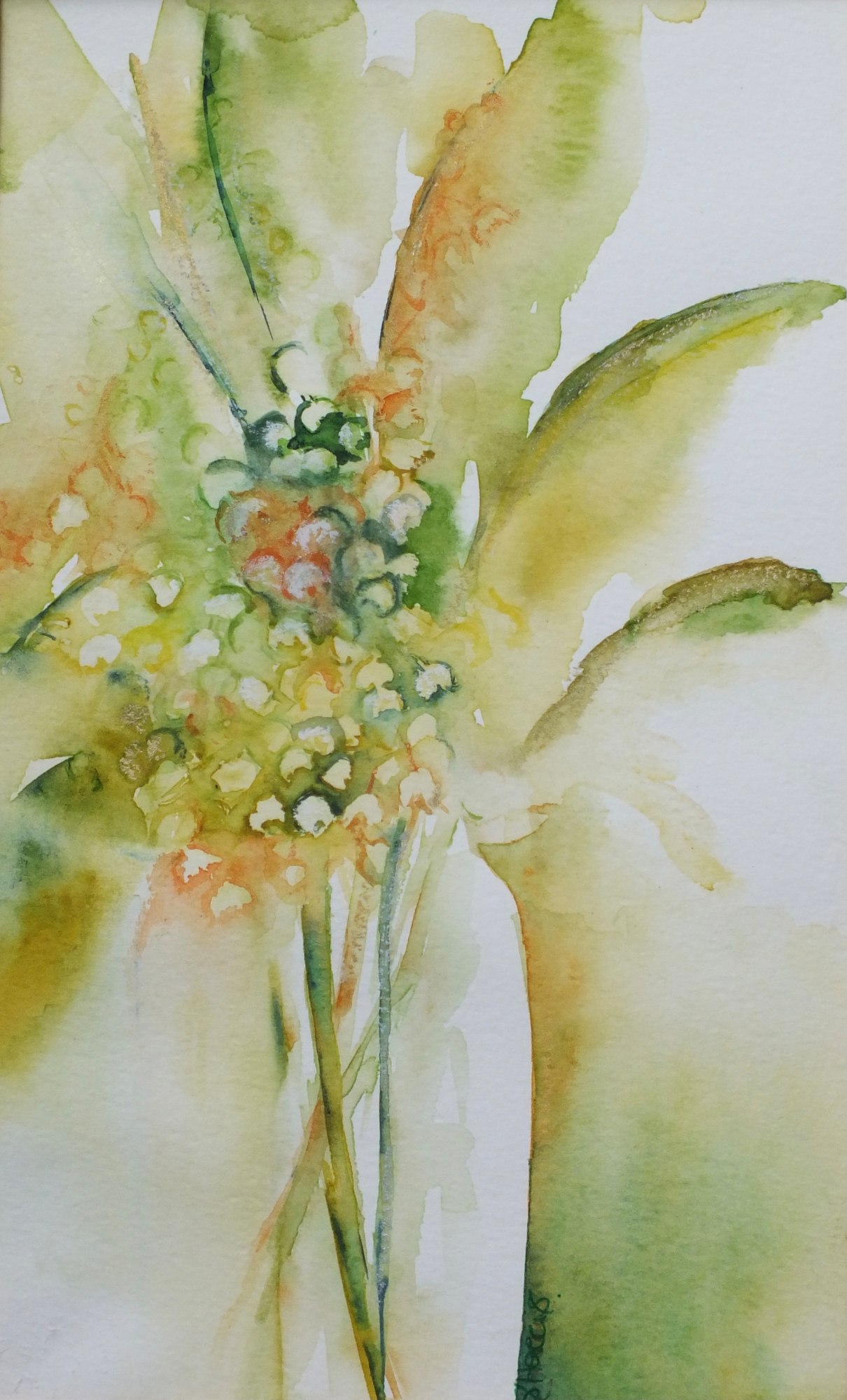 Lily of the valley flowers (Muguet) are a symbol of friendship in France and are gifted on May 1st to celebrate “Fête du Muguet”. A simple springtime watercolour to represent this.
