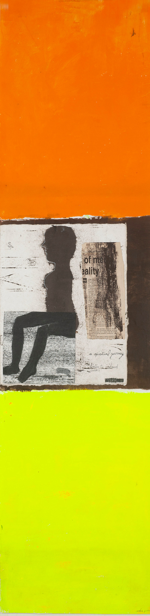 Belgium-born Saskia Pintelon moved to Sri Lanka in 1982. Inspired by local and universal issues, stories from the gut and the heart, politics, and day-to-day concerns, her body of works interprets the collective human experience, environment, and the cycle of life with intimate and personal preoccupations. Saskia Pintelon is at heart a figurative painter who periodically verges towards abstraction and text-based work. The abstract canvases began as monochrome, some titled Spaces for Thought, later evolving into Mindscapes; a series of works with an abundance of color that the artist describes as selfies of the mind in its synoptic chaos. Physiognomy fascinates the artist and in the past translated itself into a series of large works, monochrome on recycled tea packaging bags, inspired by marriage proposals in the newspapers of Sri Lanka. Her 2016 series titled I AM ME consists of works from two series, small mixed-media collages and large mixed-media collages. Both are part of an ongoing project whereby the artist revisits her own work in the published, printed accordion-style book The Book of Faces whereby she customizes her own ‘Faces’ and turns them into ‘Other Faces’. The themes are some of her recurring ones related to age, beauty, gender, internet use, love, obsession with fitness, isolation, loneliness, and the balance between the public and the private us. Pintelon provides us a kaleidoscope of the physical and the emotional in her characteristic tongue-in-cheek approach as she subtracts, extracts, and adds to give us a glimpse into what makes us really human.