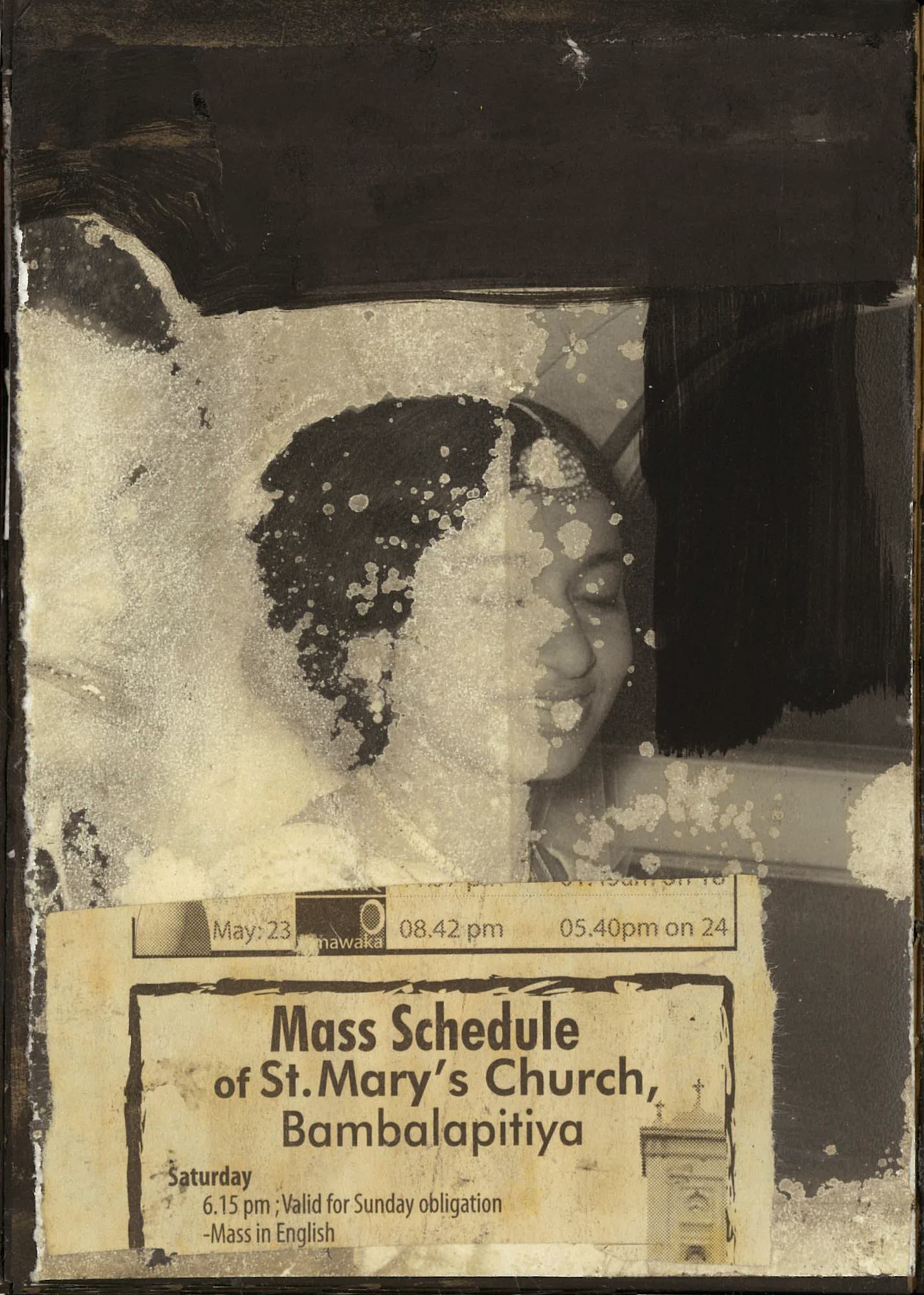 Belgium-born Saskia Pintelon moved to Sri Lanka in 1982. Inspired by local and universal issues, stories from the gut and the heart, politics, and day-to-day concerns, her body of works interprets the collective human experience, environment, and the cycle of life with intimate and personal preoccupations. Saskia Pintelon is at heart a figurative painter who periodically verges towards abstraction and text-based work. The abstract canvases began as monochrome, some titled Spaces for Thought, later evolving into Mindscapes; a series of works with an abundance of color that the artist describes as selfies of the mind in its synoptic chaos. Physiognomy fascinates the artist and in the past translated itself into a series of large works, monochrome on recycled tea packaging bags, inspired by marriage proposals in the newspapers of Sri Lanka. Her 2016 series titled I AM ME consists of works from two series, small mixed-media collages and large mixed-media collages. Both are part of an ongoing project whereby the artist revisits her own work in the published, printed accordion-style book The Book of Faces whereby she customizes her own ‘Faces’ and turns them into ‘Other Faces’. The themes are some of her recurring ones related to age, beauty, gender, internet use, love, obsession with fitness, isolation, loneliness, and the balance between the public and the private us. Pintelon provides us a kaleidoscope of the physical and the emotional in her characteristic tongue-in-cheek approach as she subtracts, extracts, and adds to give us a glimpse into what makes us really human.