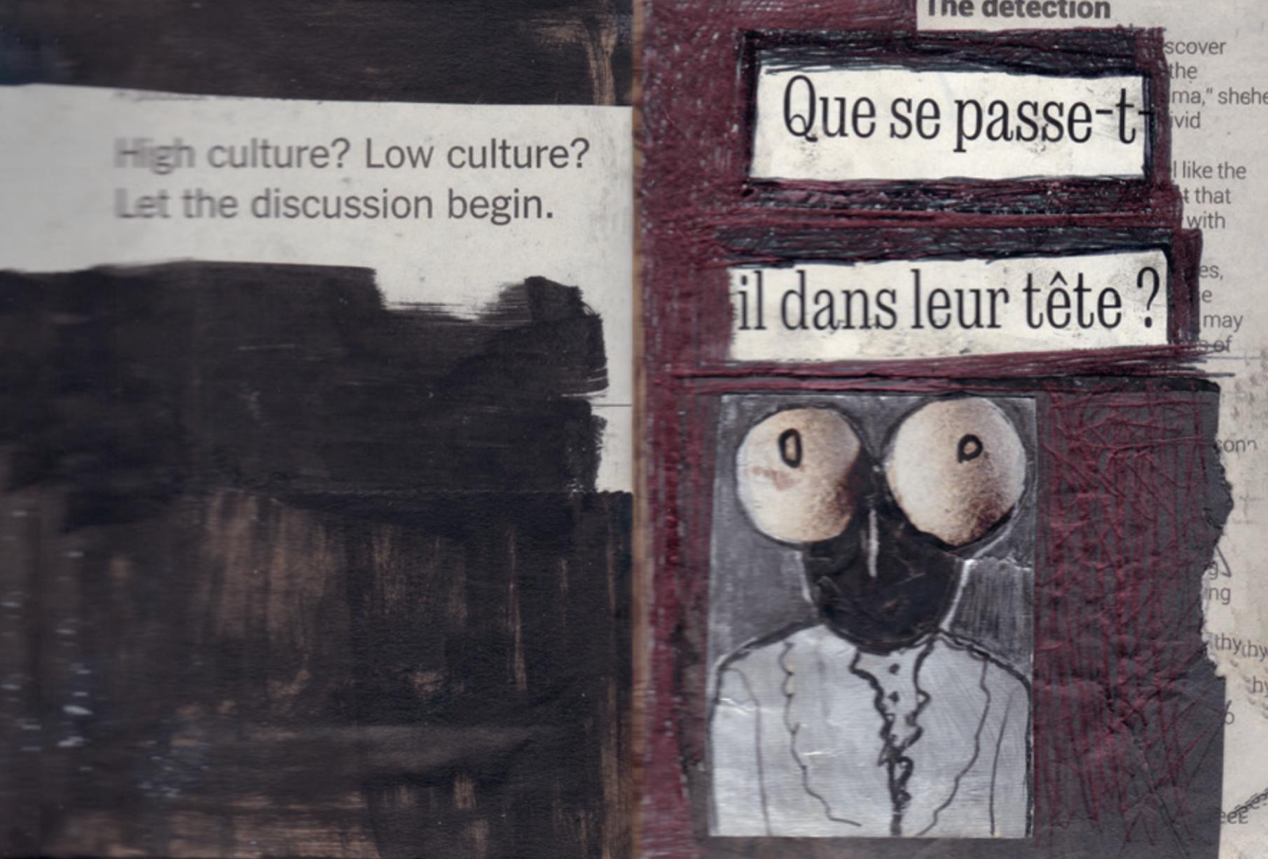 Belgium-born Saskia Pintelon moved to Sri Lanka in 1982. Inspired by local and universal issues, stories from the gut and the heart, politics, and day-to-day concerns, her body of works interprets the collective human experience, environment, and the cycle of life with intimate and personal preoccupations. Saskia Pintelon is at heart a figurative painter who periodically verges towards abstraction and text-based work. The abstract canvases began as monochrome, some titled Spaces for Thought, later evolving into Mindscapes; a series of works with an abundance of color that the artist describes as selfies of the mind in its synoptic chaos. Physiognomy fascinates the artist and in the past translated itself into a series of large works, monochrome on recycled tea packaging bags, inspired by marriage proposals in the newspapers of Sri Lanka. Her 2016 series titled I AM ME consists of works from two series, small mixed-media collages and large mixed-media collages. Both are part of an ongoing project whereby the artist revisits her own work in the published, printed accordion-style book The Book of Faces whereby she customizes her own ‘Faces’ and turns them into ‘Other Faces’. The themes are some of her recurring ones related to age, beauty, gender, internet use, love, obsession with fitness, isolation, loneliness, and the balance between the public and the private us. Pintelon provides us a kaleidoscope of the physical and the emotional in her characteristic tongue-in-cheek approach as she subtracts, extracts, and adds to give us a glimpse into what makes us really human.