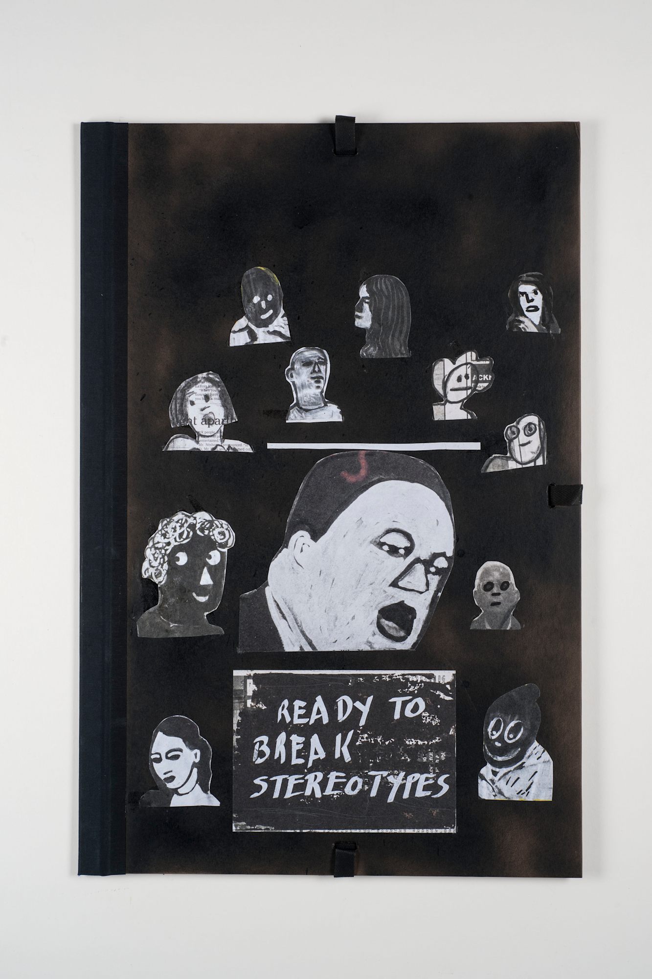 Belgium-born Saskia Pintelon moved to Sri Lanka in 1982. Inspired by local and universal issues, stories from the gut and the heart, politics, and day-to-day concerns, her body of works interprets the collective human experience, environment, and the cycle of life with intimate and personal preoccupations. Saskia Pintelon is at heart a figurative painter who periodically verges towards abstraction and text-based work. The abstract canvases began as monochrome, some titled Spaces for Thought, later evolving into Mindscapes; a series of works with an abundance of color that the artist describes as selfies of the mind in its synoptic chaos. Physiognomy fascinates the artist and in the past translated itself into a series of large works, monochrome on recycled tea packaging bags, inspired by marriage proposals in the newspapers of Sri Lanka. Her 2016 series titled I AM ME consists of works from two series, small mixed-media collages and large mixed-media collages. Both are part of an ongoing project whereby the artist revisits her own work in the published, printed accordion-style book The Book of Faces whereby she customizes her own ‘Faces’ and turns them into ‘Other Faces’. The themes are some of her recurring ones related to age, beauty, gender, internet use, love, obsession with fitness, isolation, loneliness, and the balance between the public and the private us. Pintelon provides us a kaleidoscope of the physical and the emotional in her characteristic tongue-in-cheek approach as she subtracts, extracts, and adds to give us a glimpse into what makes us really human.