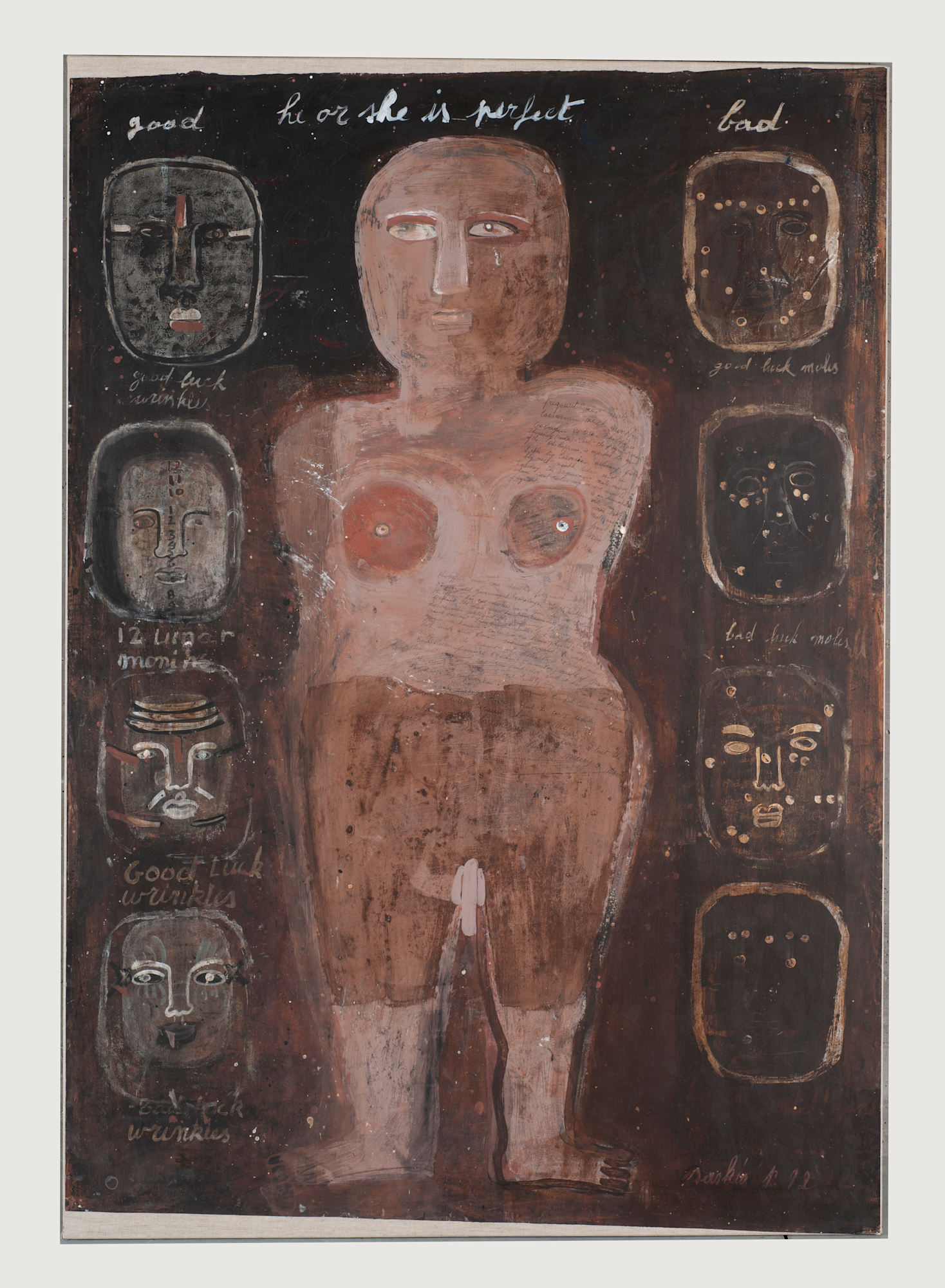 Belgium-born Saskia Pintelon moved to Sri Lanka in 1982. Inspired by local and universal issues, stories from the gut and the heart, politics, and day-to-day concerns, her body of works interprets the collective human experience, environment, and the cycle of life with intimate and personal preoccupations. Saskia Pintelon is at heart a figurative painter who periodically verges towards abstraction and text-based work. The abstract canvases began as monochrome, some titled Spaces for Thought, later evolving into Mindscapes; a series of works with an abundance of color that the artist describes as selfies of the mind in its synoptic chaos. Physiognomy fascinates the artist and in the past translated itself into a series of large works, monochrome on recycled tea packaging bags, inspired by marriage proposals in the newspapers of Sri Lanka. Her 2016 series titled I AM ME consists of works from two series, small mixed-media collages and large mixed-media collages. Both are part of an ongoing project whereby the artist revisits her own work in the published, printed accordion-style book The Book of Faces whereby she customizes her own ‘Faces’ and turns them into ‘Other Faces’. The themes are some of her recurring ones related to age, beauty, gender, internet use, love, obsession with fitness, isolation, loneliness, and the balance between the public and the private us. Pintelon provides us a kaleidoscope of the physical and the emotional in her characteristic tongue-in-cheek approach as she subtracts, extracts, and adds to give us a glimpse into what makes us really human.