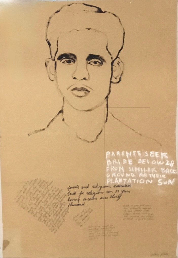 Belgium-born Saskia Pintelon moved to Sri Lanka in 1982. Inspired by local and universal issues, stories from the gut and the heart, politics, and day-to-day concerns, her body of works interprets the collective human experience, environment, and the cycle of life with intimate and personal preoccupations. Saskia Pintelon is at heart a figurative painter who periodically verges towards abstraction and text-based work. The abstract canvases began as monochrome, some titled Spaces for Thought, later evolving into Mindscapes; a series of works with an abundance of color that the artist describes as selfies of the mind in its synoptic chaos. Physiognomy fascinates the artist and in the past translated itself into a series of large works, monochrome on recycled tea packaging bags, inspired by marriage proposals in the newspapers of Sri Lanka. Her 2016 series titled I AM ME consists of works from two series, small mixed-media collages and large mixed-media collages. Both are part of an ongoing project whereby the artist revisits her own work in the published, printed accordion-style book The Book of Faces whereby she customizes her own ‘Faces’ and turns them into ‘Other Faces’. The themes are some of her recurring ones related to age, beauty, gender, internet use, love, obsession with fitness, isolation, loneliness, and the balance between the public and the private us. Pintelon provides us a kaleidoscope of the physical and the emotional in her characteristic tongue-in-cheek approach as she subtracts, extracts, and adds to give us a glimpse into what makes us really human.