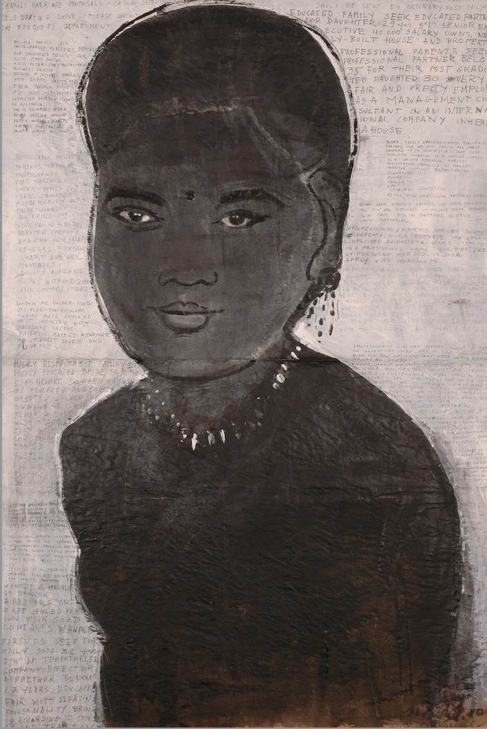 Belgium-born Saskia Pintelon moved to Sri Lanka in 1982. Inspired by local and universal issues, stories from the gut and the heart, politics, and day-to-day concerns, her body of works interprets the collective human experience, environment, and the cycle of life with intimate and personal preoccupations. Saskia Pintelon is at heart a figurative painter who periodically verges towards abstraction and text-based work. The abstract canvases began as monochrome, some titled Spaces for Thought, later evolving into Mindscapes; a series of works with an abundance of color that the artist describes as selfies of the mind in its synoptic chaos. Physiognomy fascinates the artist and in the past translated itself into a series of large works, monochrome on recycled tea packaging bags, inspired by marriage proposals in the newspapers of Sri Lanka. Her 2016 series titled I AM ME consists of works from two series, small mixed-media collages and large mixed-media collages. Both are part of an ongoing project whereby the artist revisits her own work in the published, printed accordion-style book The Book of Faces whereby she customizes her own ‘Faces’ and turns them into ‘Other Faces’. The themes are some of her recurring ones related to age, beauty, gender, internet use, love, obsession with fitness, isolation, loneliness, and the balance between the public and the private us. Pintelon provides us a kaleidoscope of the physical and the emotional in her characteristic tongue-in-cheek approach as she subtracts, extracts, and adds to give us a glimpse into what makes us really human.