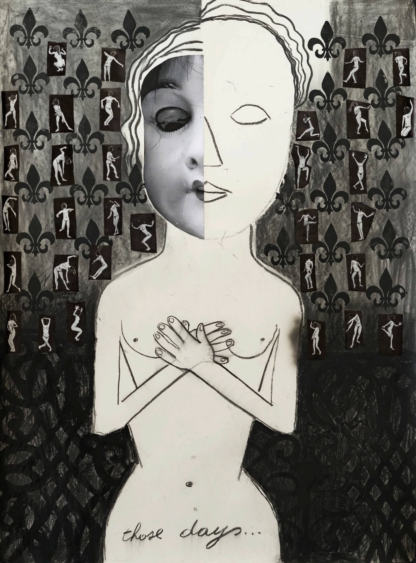Belgium-born Saskia Pintelon moved to Sri Lanka in 1982. Inspired by local and universal issues, stories from the gut and the heart, politics, and day-to-day concerns, her body of works interprets the collective human experience, environment, and the cycle of life with intimate and personal preoccupations. Saskia Pintelon is at heart a figurative painter who periodically verges towards abstraction and text-based work. The abstract canvases began as monochrome, some titled Spaces for Thought, later evolving into Mindscapes; a series of works with an abundance of color that the artist describes as selfies of the mind in its synoptic chaos. Physiognomy fascinates the artist and in the past translated itself into a series of large works, monochrome on recycled tea packaging bags, inspired by marriage proposals in the newspapers of Sri Lanka. Her 2016 series titled I AM ME consists of works from two series, small mixed-media collages and large mixed-media collages. Both are part of an ongoing project whereby the artist revisits her own work in the published, printed accordion-style book The Book of Faces whereby she customizes her own ‘Faces’ and turns them into ‘Other Faces’. The themes are some of her recurring ones related to age, beauty, gender, internet use, love, obsession with fitness, isolation, loneliness, and the balance between the public and the private us. Pintelon provides us a kaleidoscope of the physical and the emotional in her characteristic tongue-in-cheek approach as she subtracts, extracts, and adds to give us a glimpse into what makes us really human.