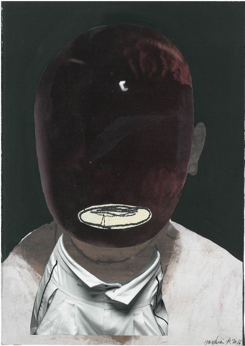 Belgium-born Saskia Pintelon moved to Sri Lanka in 1982. Inspired by local and universal issues, stories from the gut and the heart, politics, and day-to-day concerns, her body of works interprets the collective human experience, environment, and the cycle of life with intimate and personal preoccupations. Saskia Pintelon is at heart a figurative painter who periodically verges towards abstraction and text-based work. The abstract canvases began as monochrome, some titled Spaces for Thought, later evolving into Mindscapes; a series of works with an abundance of color that the artist describes as selfies of the mind in its synoptic chaos. Physiognomy fascinates the artist and in the past translated itself into a series of large works, monochrome on recycled tea packaging bags, inspired by marriage proposals in the newspapers of Sri Lanka. Her 2016 series titled I AM ME consists of works from two series, small mixed-media collages and large mixed-media collages. Both are part of an ongoing project whereby the artist revisits her own work in the published, printed accordion-style book The Book of Faces whereby she customizes her own ‘Faces’ and turns them into ‘Other Faces’. The themes are some of her recurring ones related to age, beauty, gender, internet use, love, obsession with fitness, isolation, loneliness, and the balance between the public and the private us. Pintelon provides us a kaleidoscope of the physical and the emotional in her characteristic tongue-in-cheek approach as she subtracts, extracts, and adds to give us a glimpse into what makes us really human.