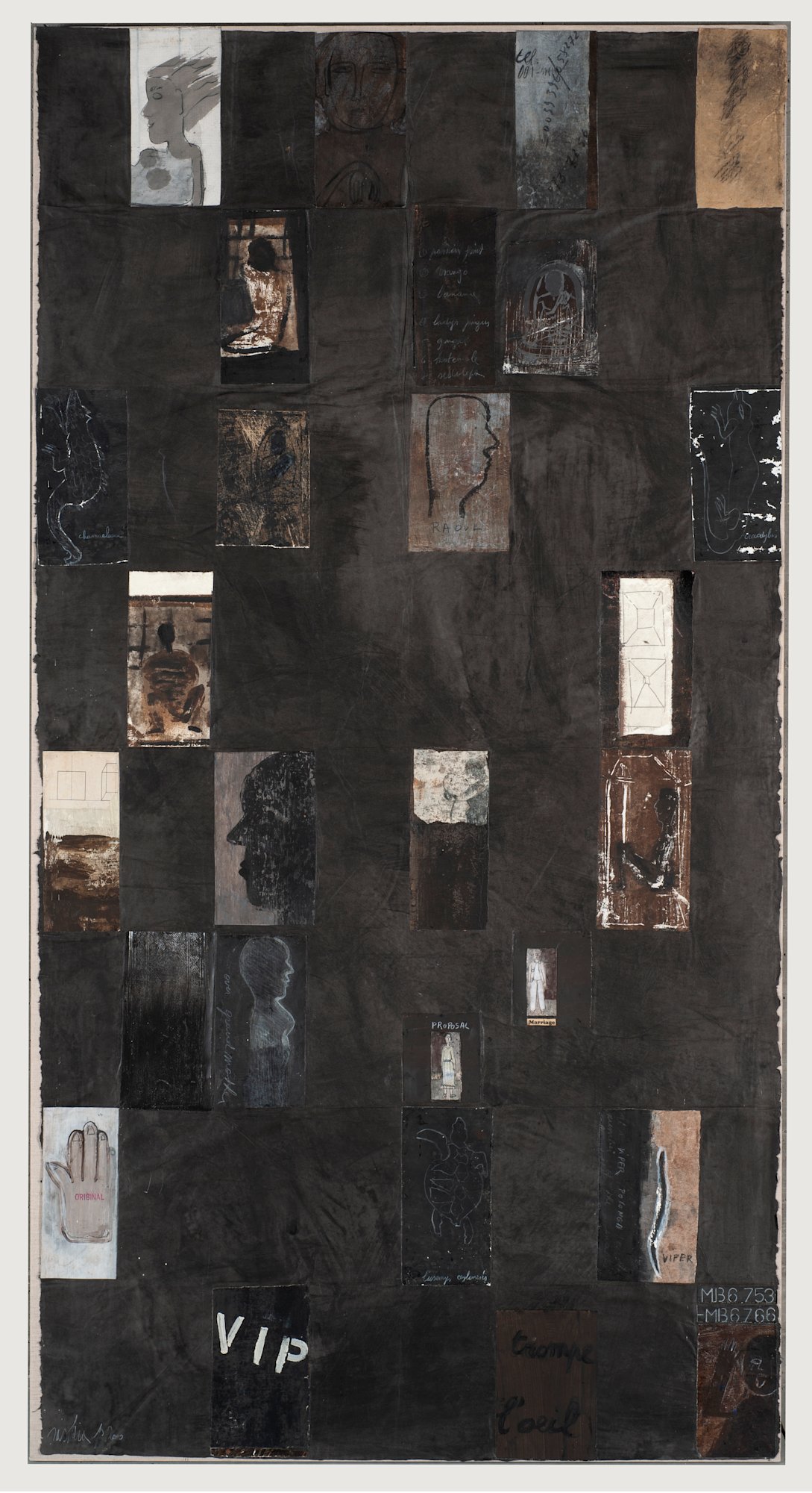 Belgium-born Saskia Pintelon moved to Sri Lanka in 1982. Inspired by local and universal issues, stories from the gut and the heart, politics, and day-to-day concerns, her body of works interprets the collective human experience, environment, and the cycle of life with intimate and personal preoccupations. Saskia Pintelon is at heart a figurative painter who periodically verges towards abstraction and text-based work. The abstract canvases began as monochrome, some titled Spaces for Thought, later evolving into Mindscapes; a series of works with an abundance of color that the artist describes as selfies of the mind in its synoptic chaos. Physiognomy fascinates the artist and in the past translated itself into a series of large works, monochrome on recycled tea packaging bags, inspired by marriage proposals in the newspapers of Sri Lanka. Her 2016 series titled I AM ME consists of works from two series, small mixed-media collages and large mixed-media collages. Both are part of an ongoing project whereby the artist revisits her own work in the published, printed accordion-style book The Book of Faces whereby she customizes her own ‘Faces’ and turns them into ‘Other Faces’. The themes are some of her recurring ones related to age, beauty, gender, internet use, love, obsession with fitness, isolation, loneliness, and the balance between the public and the private us. Pintelon provides us a kaleidoscope of the physical and the emotional in her characteristic tongue-in-cheek approach as she subtracts, extracts, and adds to give us a glimpse into what makes us really human.